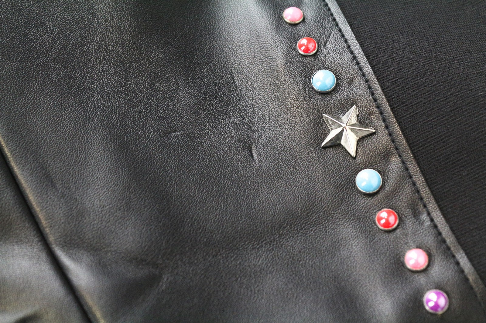 Has imprints. Missing studs in the left leg. Please see added photos.