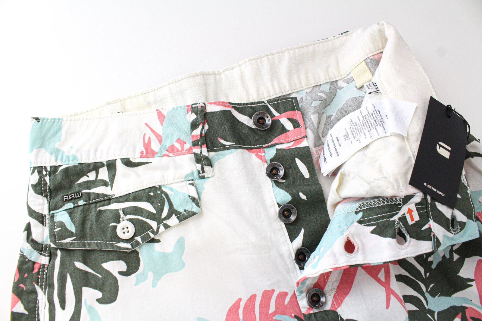 G-STAR RAW Army-S Women Trousers W23/L34 White Cotton Tapered Fit Leaf Print
