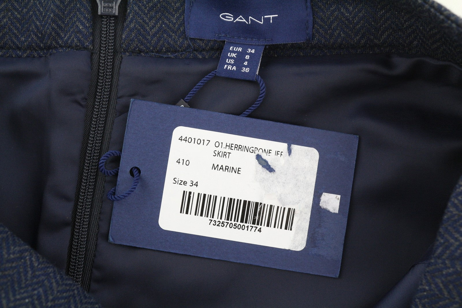 GANT Herringbone Women Skirt EU34 Blue Pockets Zip Fly Lined Patterned Mini