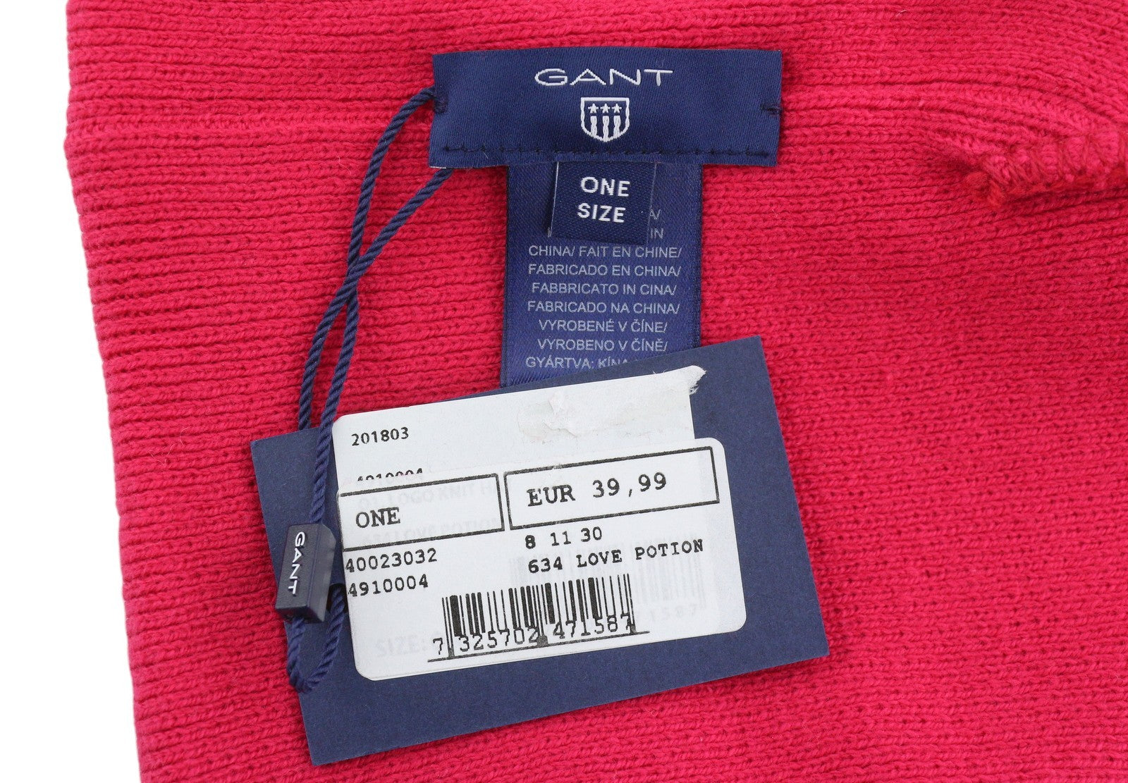 GANT Logo Knit Men Hat OS Love Potion Pink Embroidered Stretch Beanie Unisex