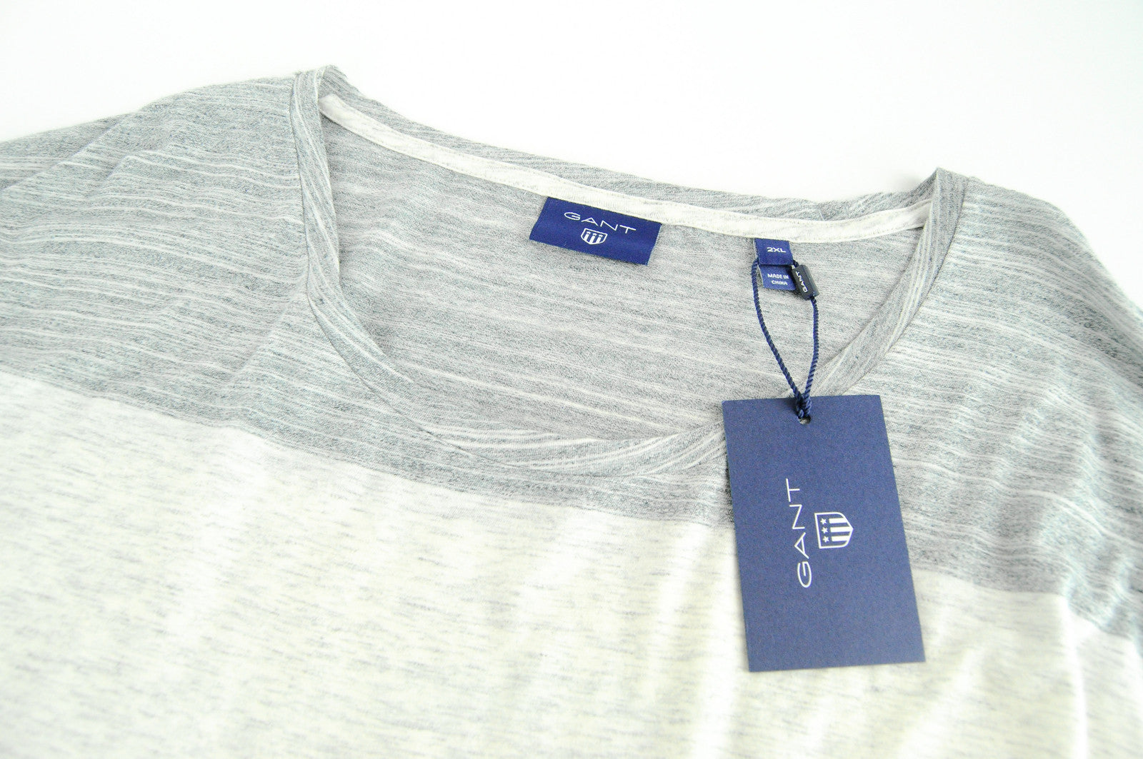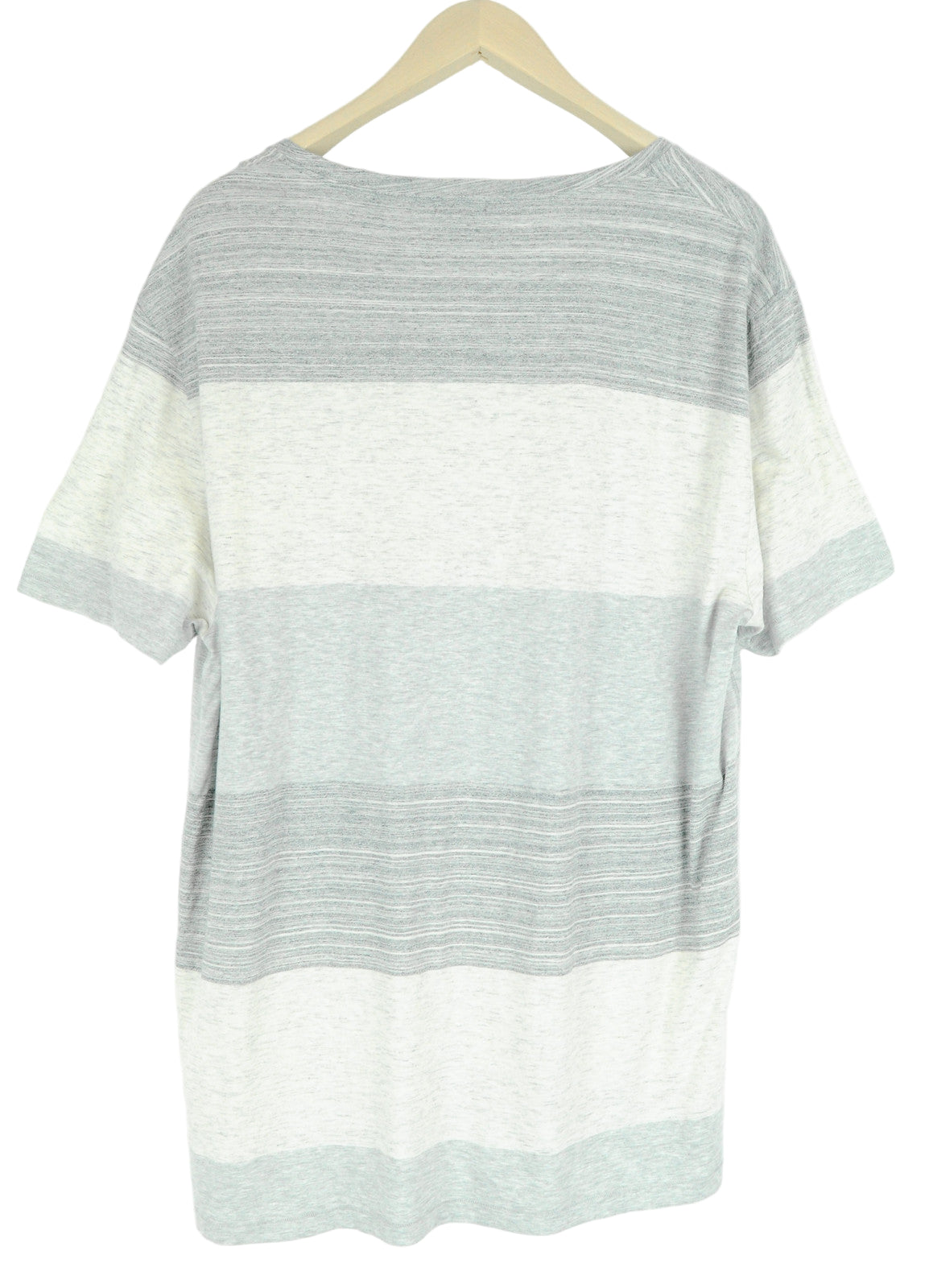 GANT Men T-Shirt 2XL Striped Cotton Summer Grey Melange Short Sleeve