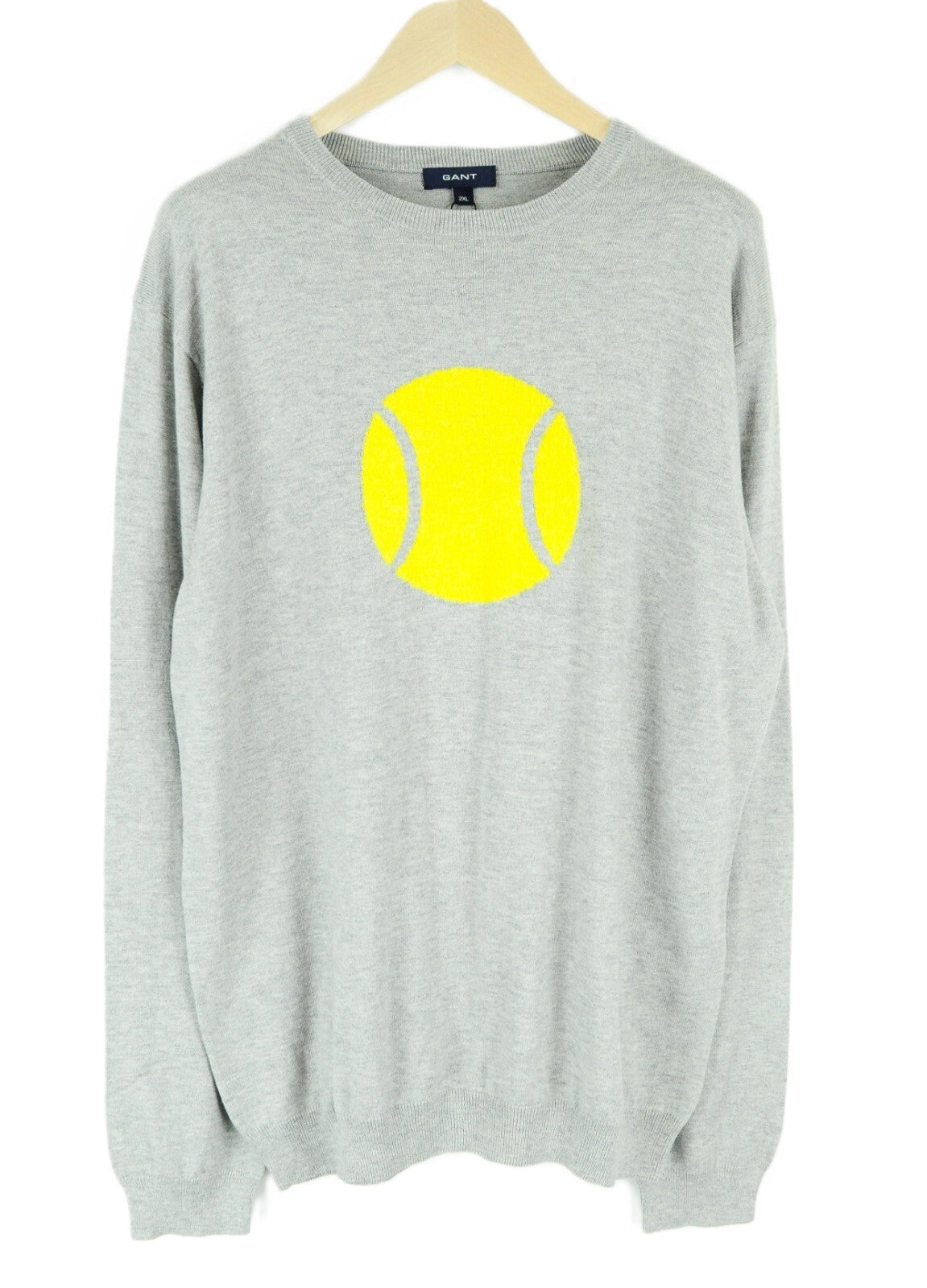 GANT Men's 2XL Sweatshirt Grey Wool Cotton Long Sleeve Tennis Ball Crew Neck