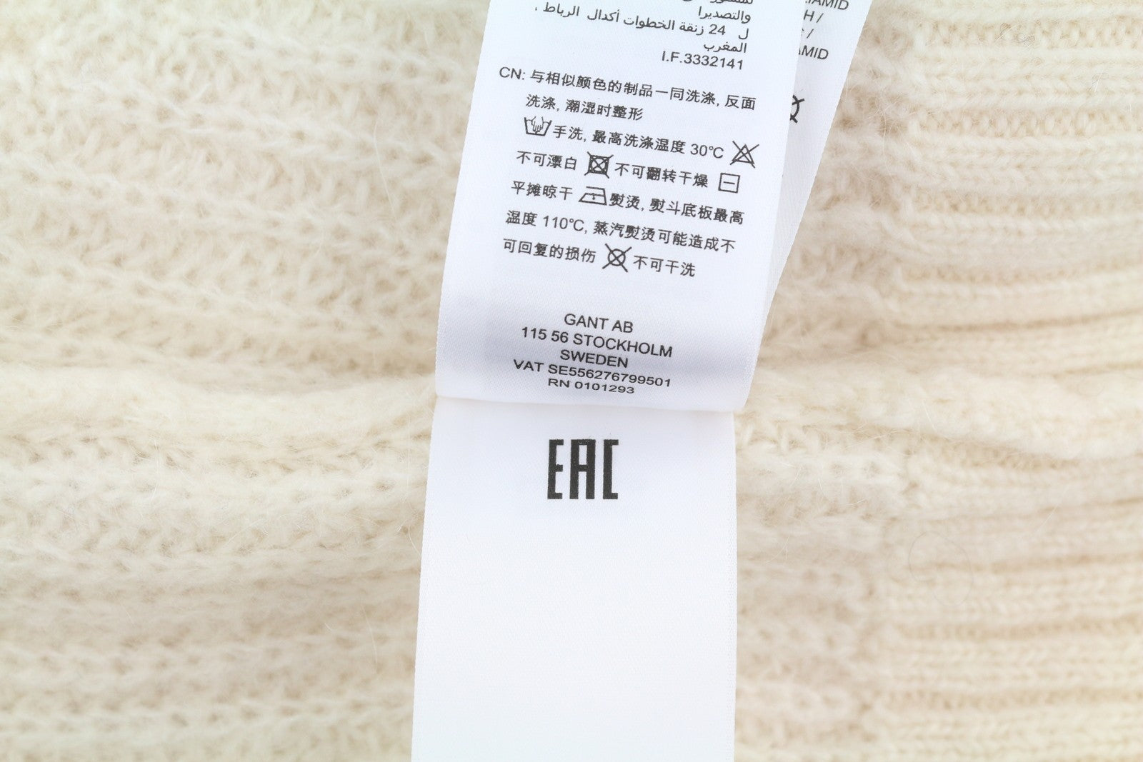 GANT Mohair Detail C-Neck Women Jumper L Off White Wool Blend Knitted Pullover