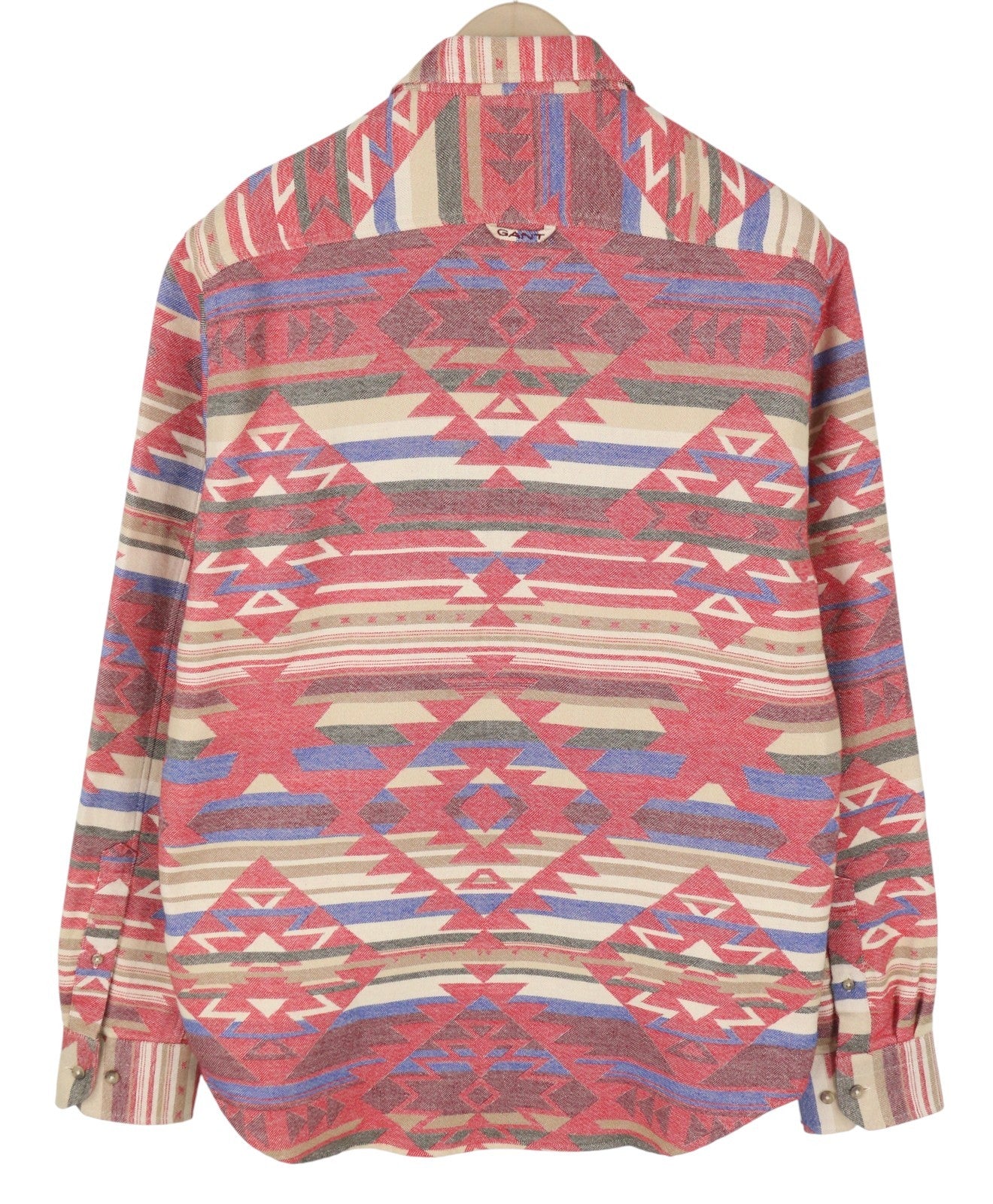 GANT Reg Geometric Jacquard Town Men Shirt M Equestrian Red Spread Neck Casual