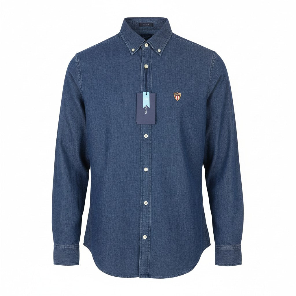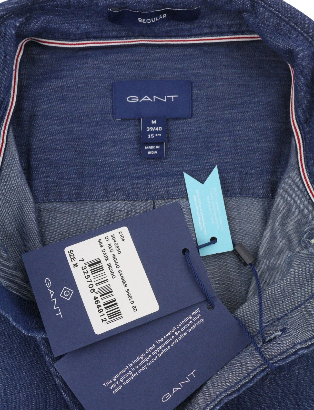 GANT Reg Indigo Banner Shield BD Men Shirt M Dark Indigo Button-Down Casual