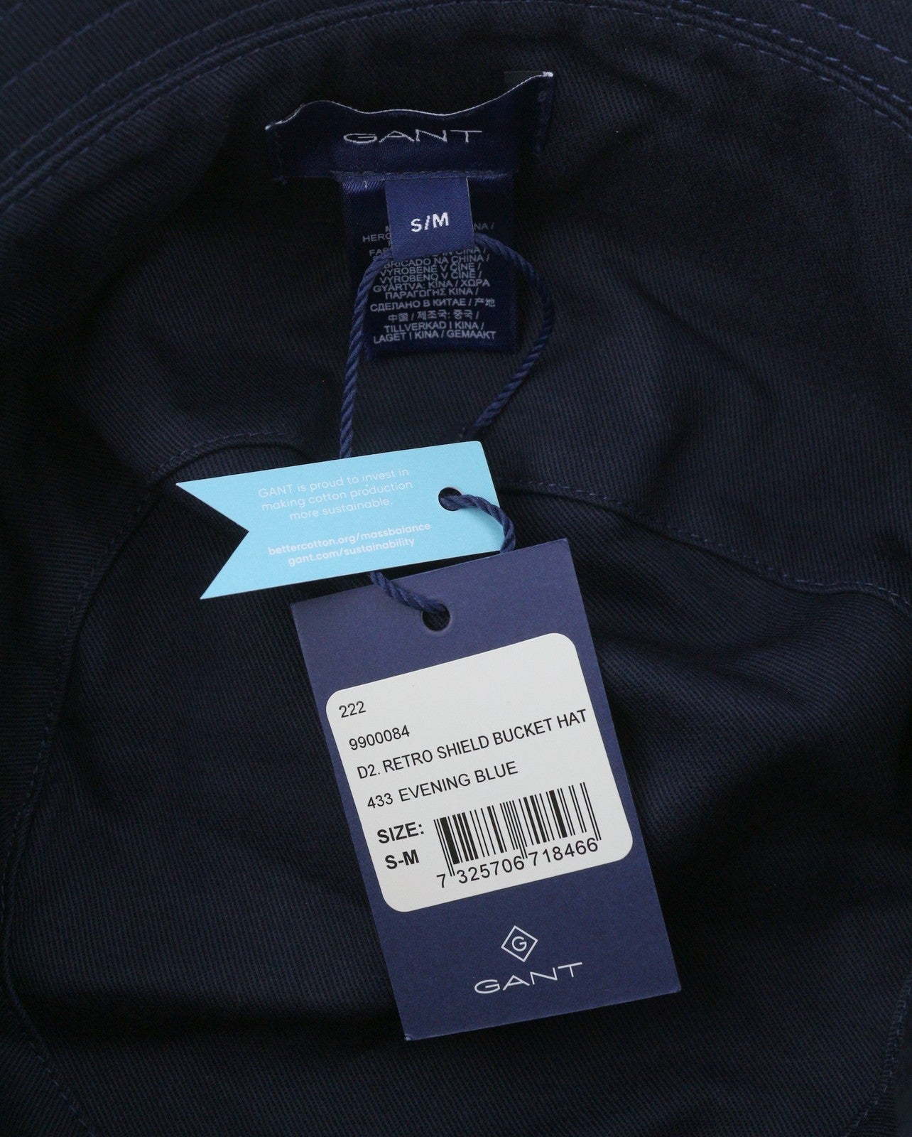 GANT Retro Shield Bucket Men Hat S/M Evening Blue Embroidered Logo