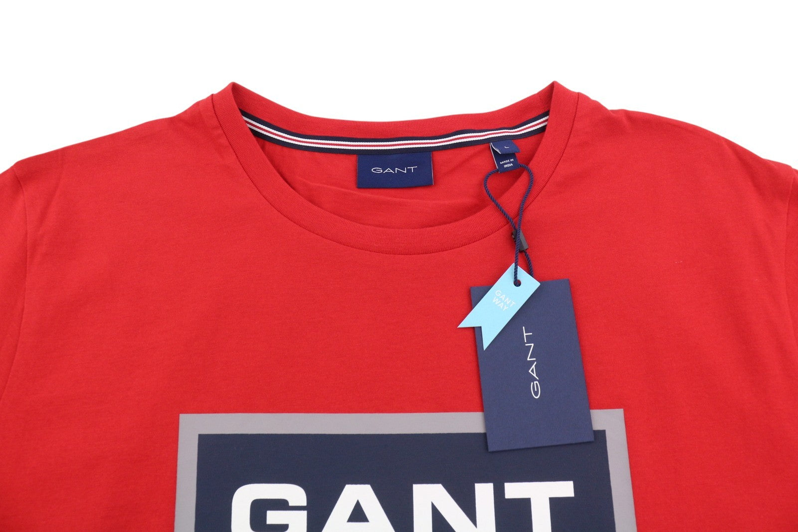 GANT Retro Shield SS Men T-Shirt L Bright Red Cotton Tricot Logo Short Sleeve