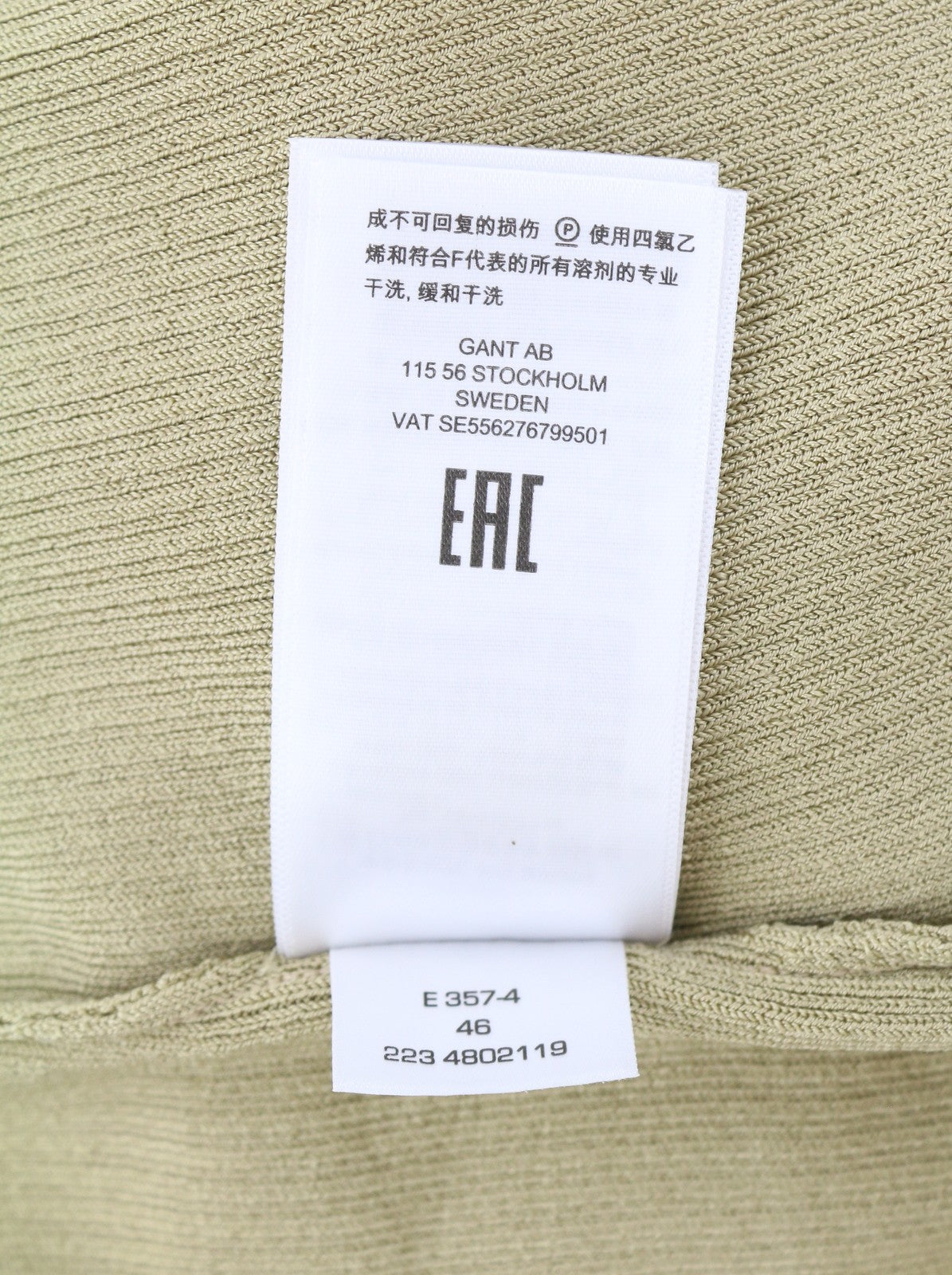 GANT Rib Cardigan Top Women Jumper XL Gold Button-Up Tight-Knit Stretch Logo