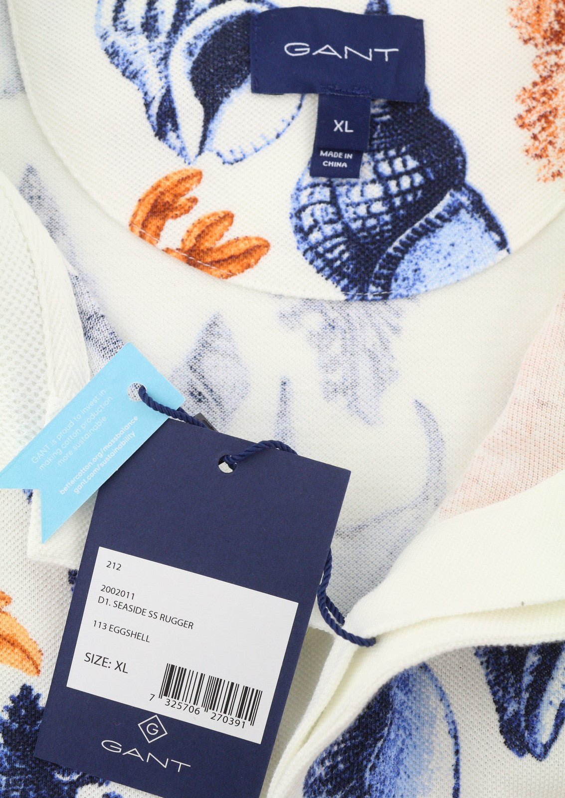 GANT Seaside SS Rugger Men Polos XL Eggshell Patterned Short Sleeve T-Shirt