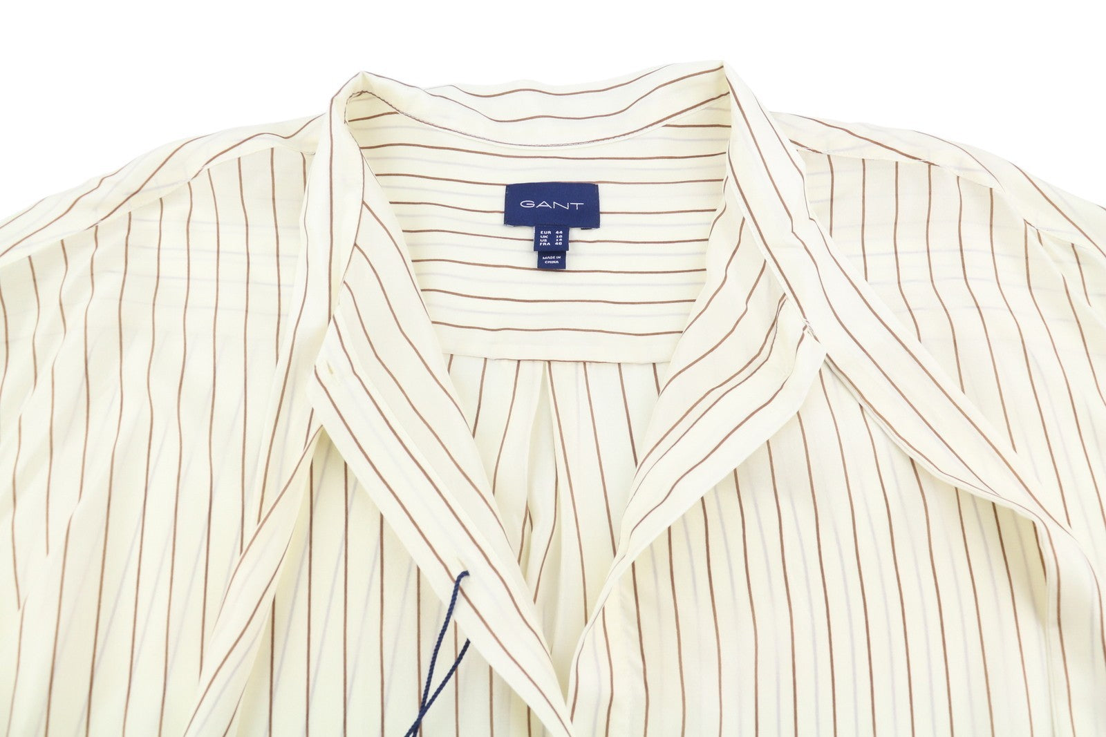 GANT Silk Pinstripe Bow Women Shirt EU44 Oversized Fit Button-Up Long Sleeve