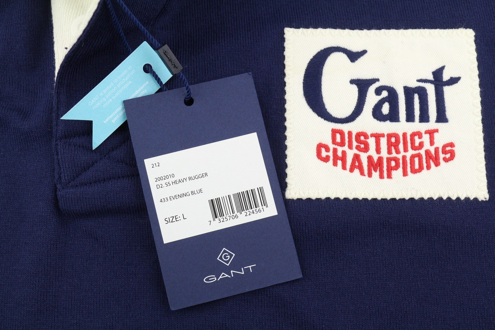 GANT SS Heavy Rugger Men Polos L Evening Blue Rigid Logo Short Sleeve T-Shirt