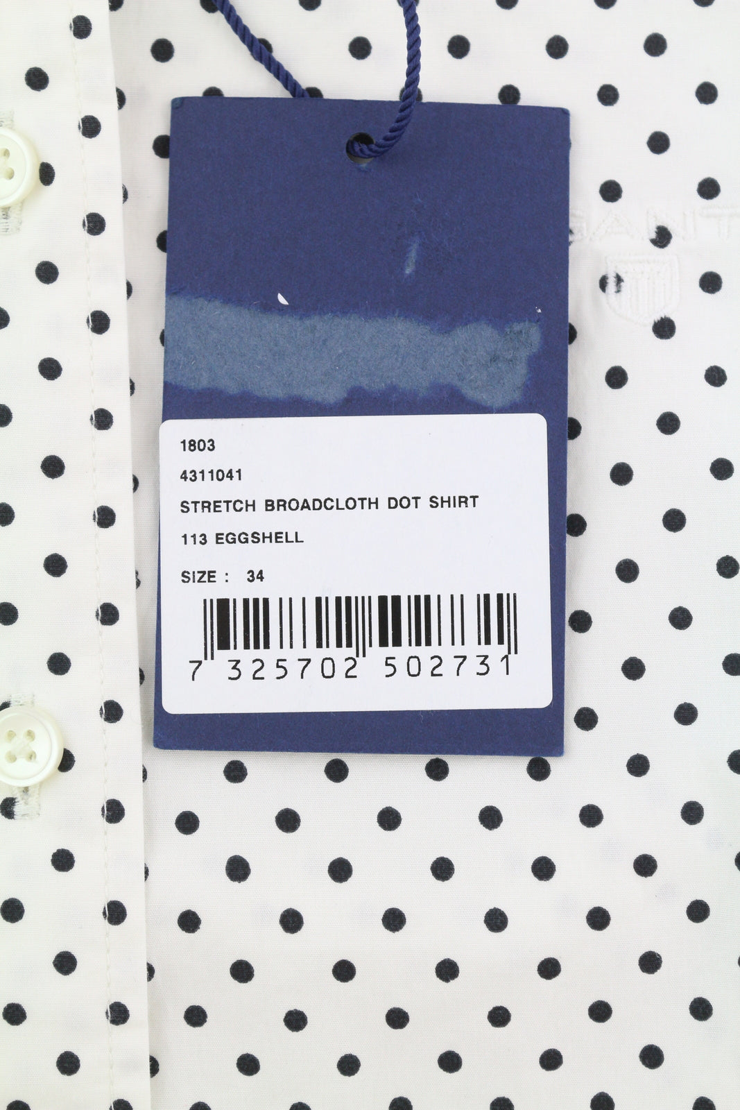 GANT Stretch Broadcloth Dot Women Shirt EU34 White Button Up Spread Neck Casual