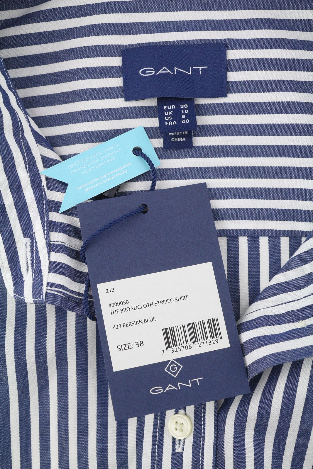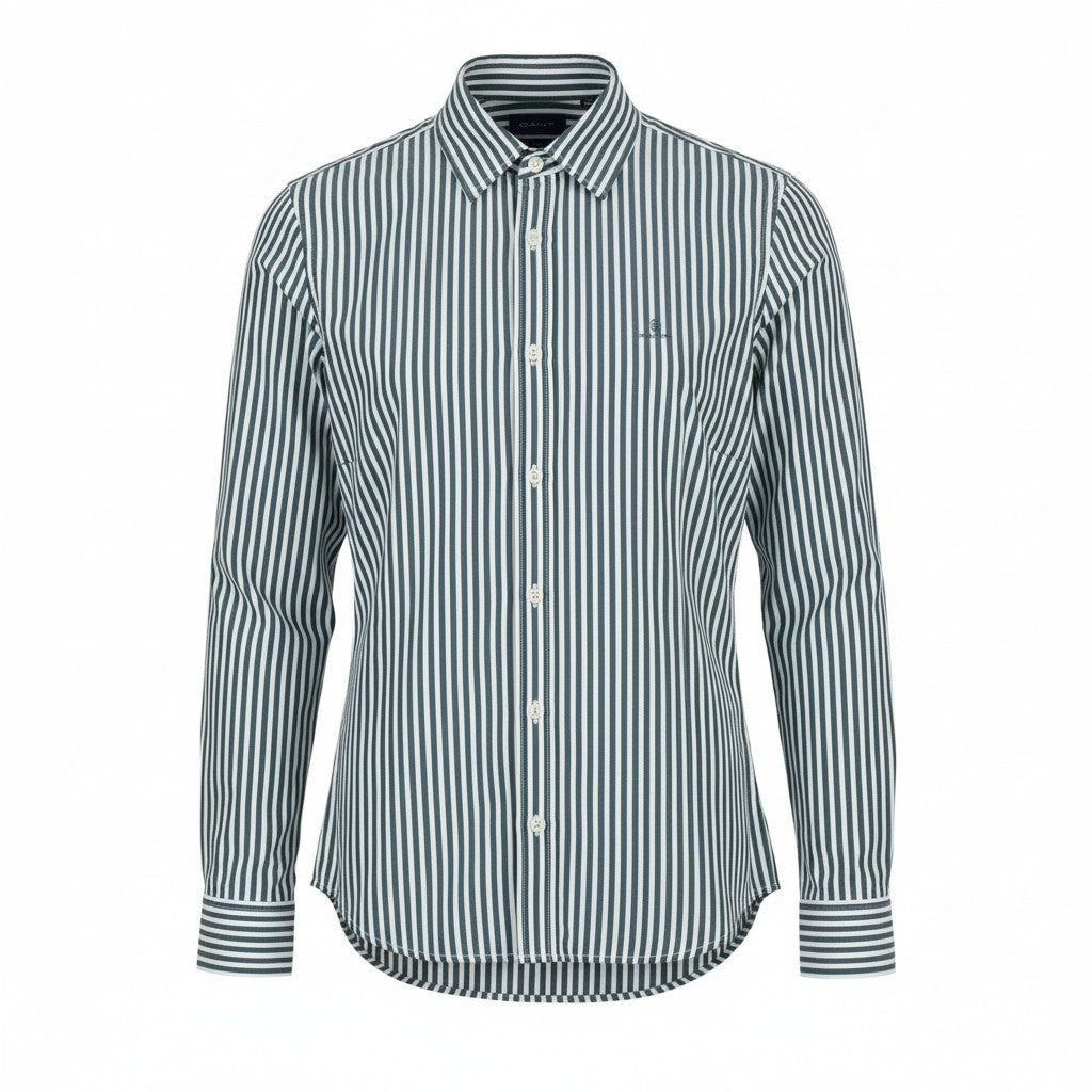 GANT The Broadcloth Striped Women Shirt EU38 Persian Blue Button Spread Casual