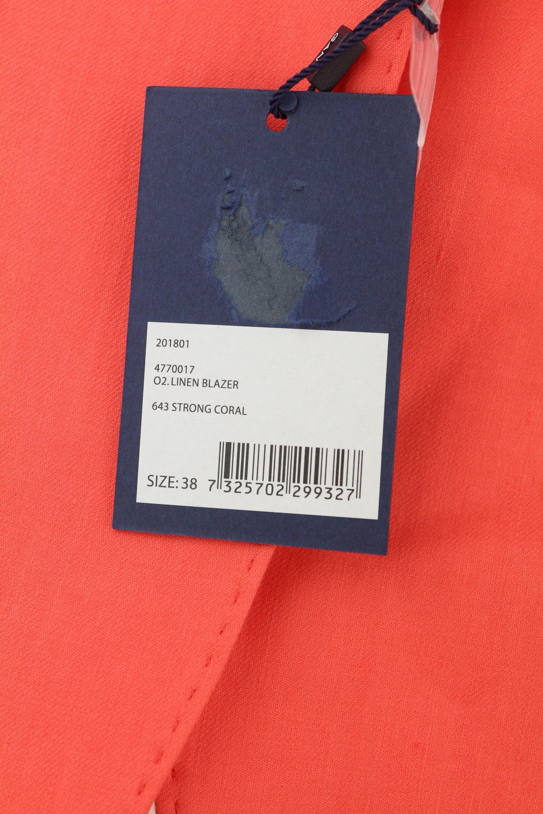 GANT Women Blazer EU38 Coral Linen Blend Notch Lapel Logo Lined