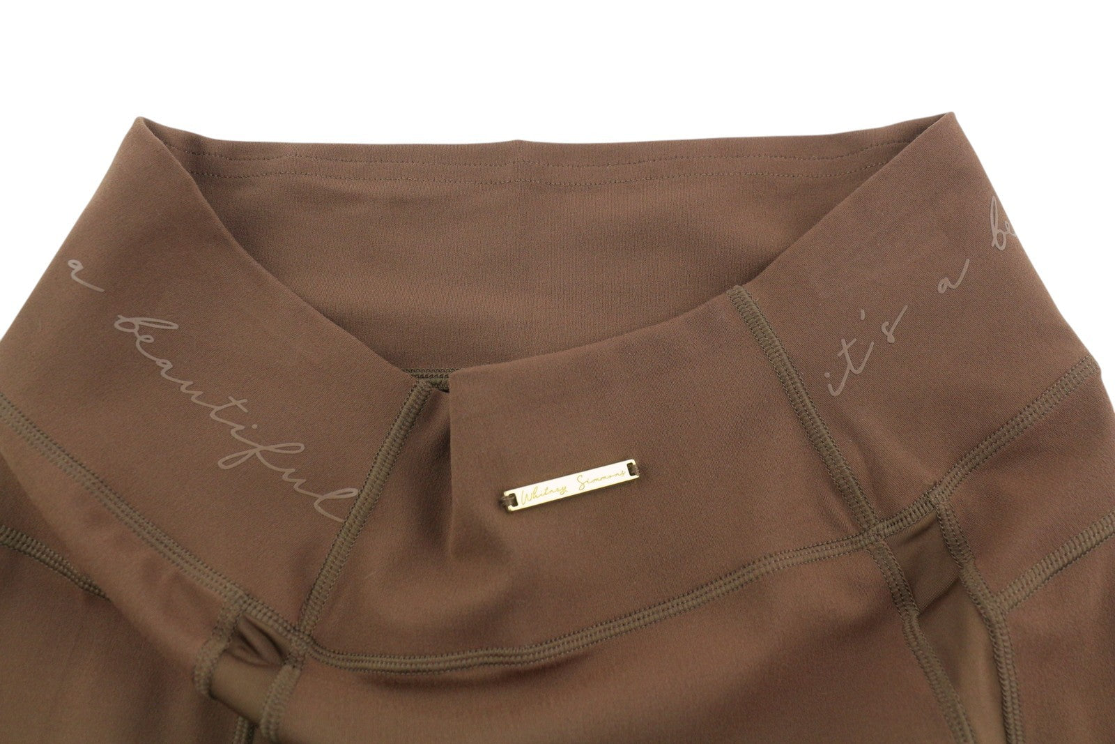 GYMSHARK Whitney Women Shorts S Brown Cycling High Waist Stretch Logo Wear