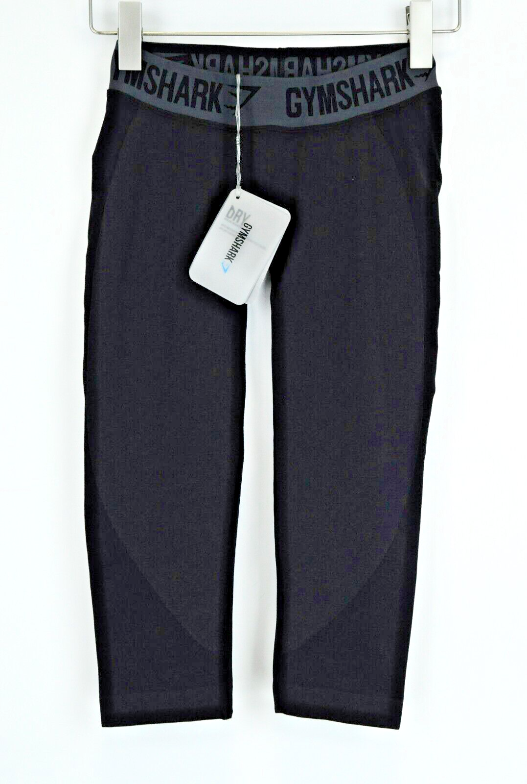 GYMSHARK Women S Black Flex Cropped Capri Logo Stretch Waistband Leggings