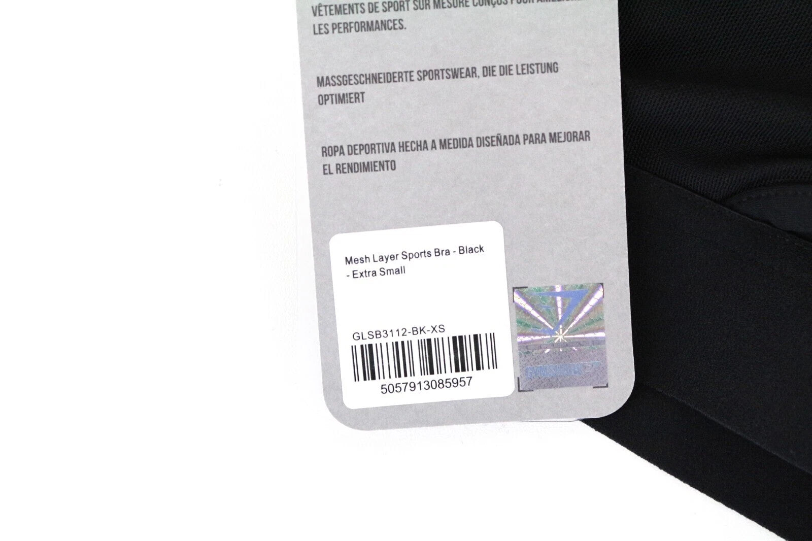 GYMSHARK Women's Sport Bra XS Black Mesh Layered Stretch Gym Activewear