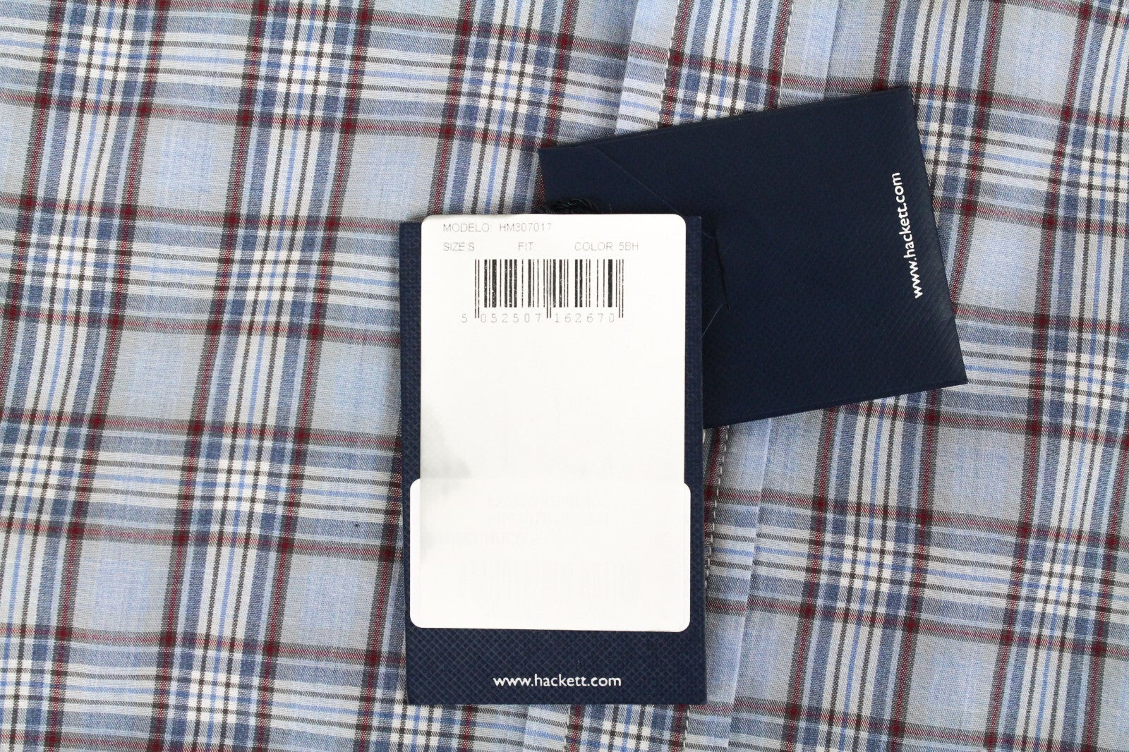 HACKETT Mens Shirt S Light Blue Checkered Melange Button-Up Cotton Dress