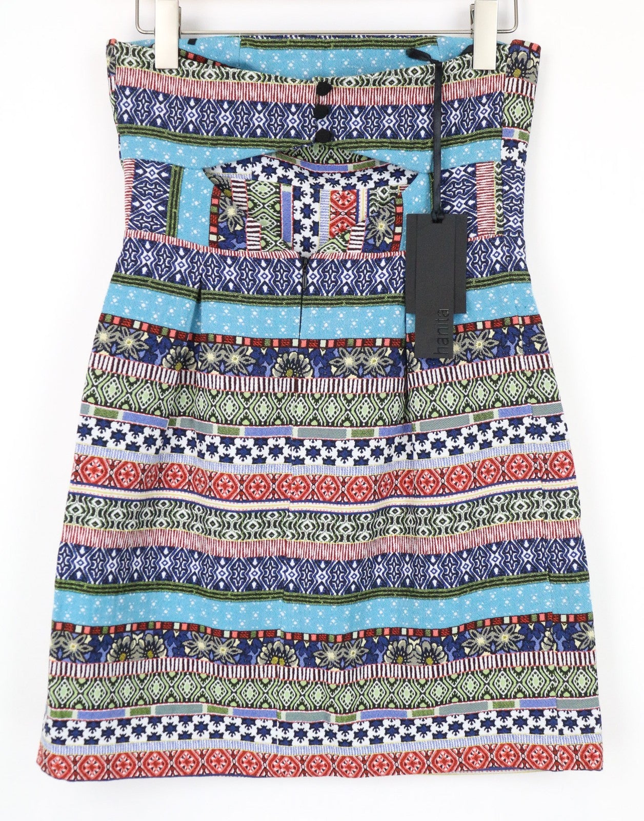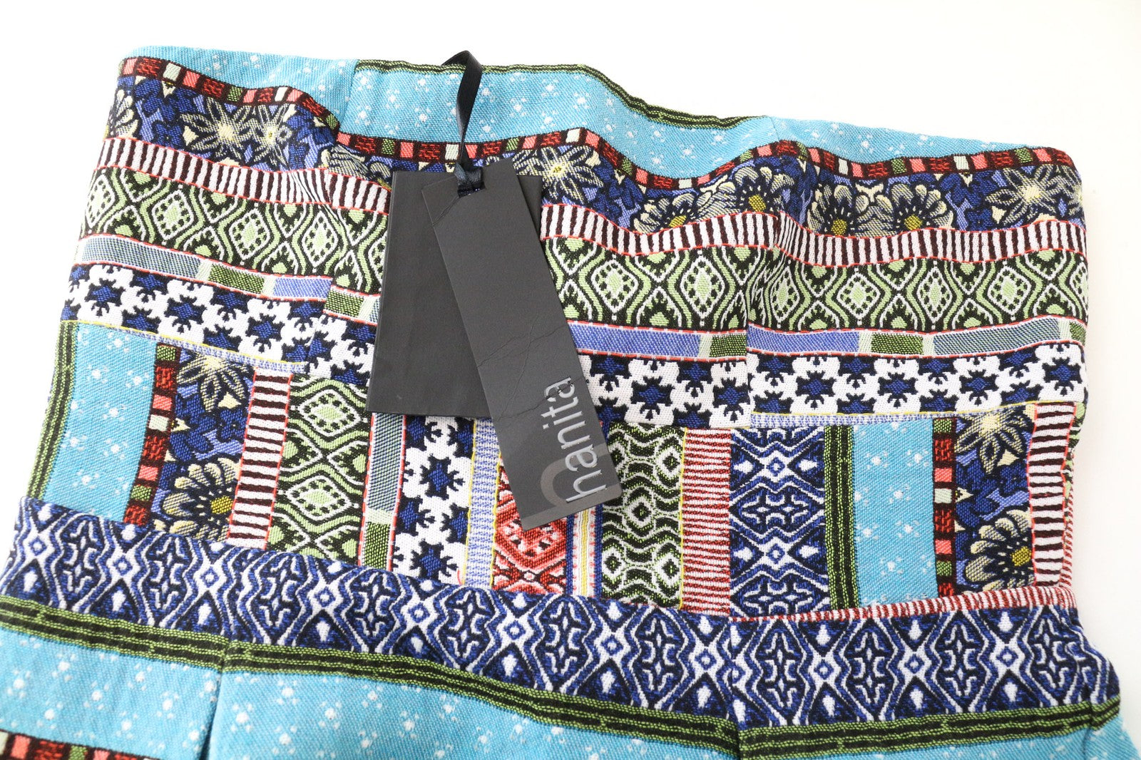 HANITA Women's Dress S Blue Mini Bandeau Pleated Patterned Open Back Buttoned