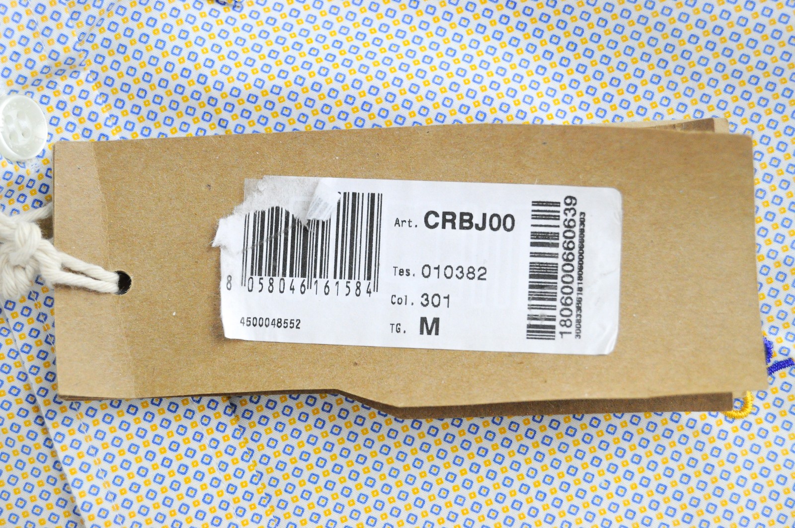 HARMONT & BLAINE Men Shirt M White Blue Yellow Pattern Pure Cotton Long Sleeve