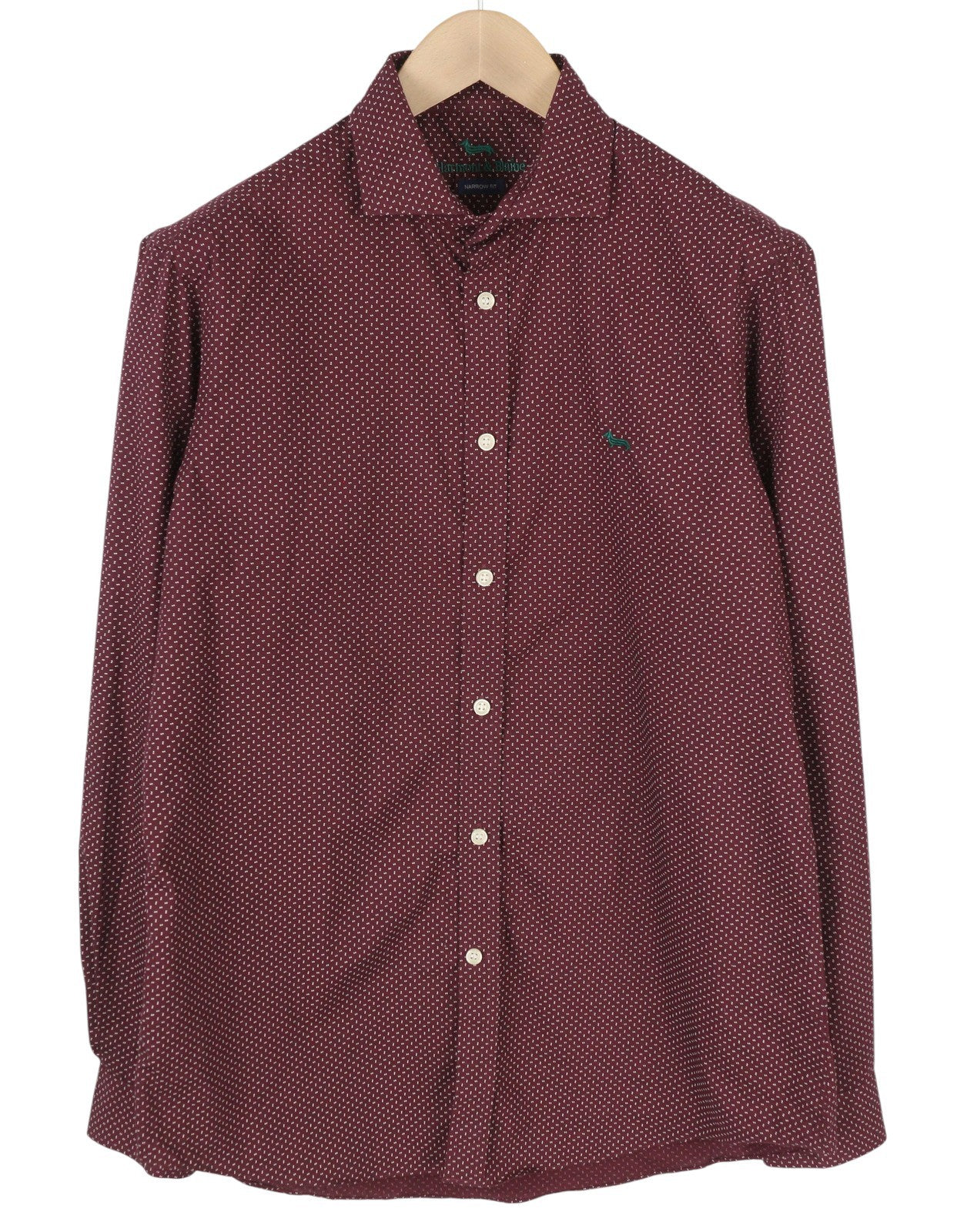 HARMONT & BLAINE Men Shirt XL Burgundy Narrow Fit Cutaway Neck Button Patterned