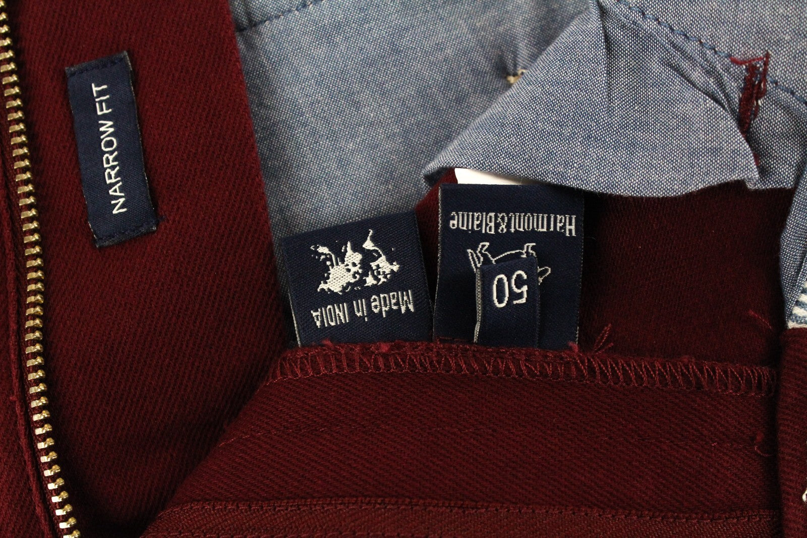 HARMONT & BLAINE Men Trousers 50 Narrow Fit Cotton Stretch Red Zipped Casual