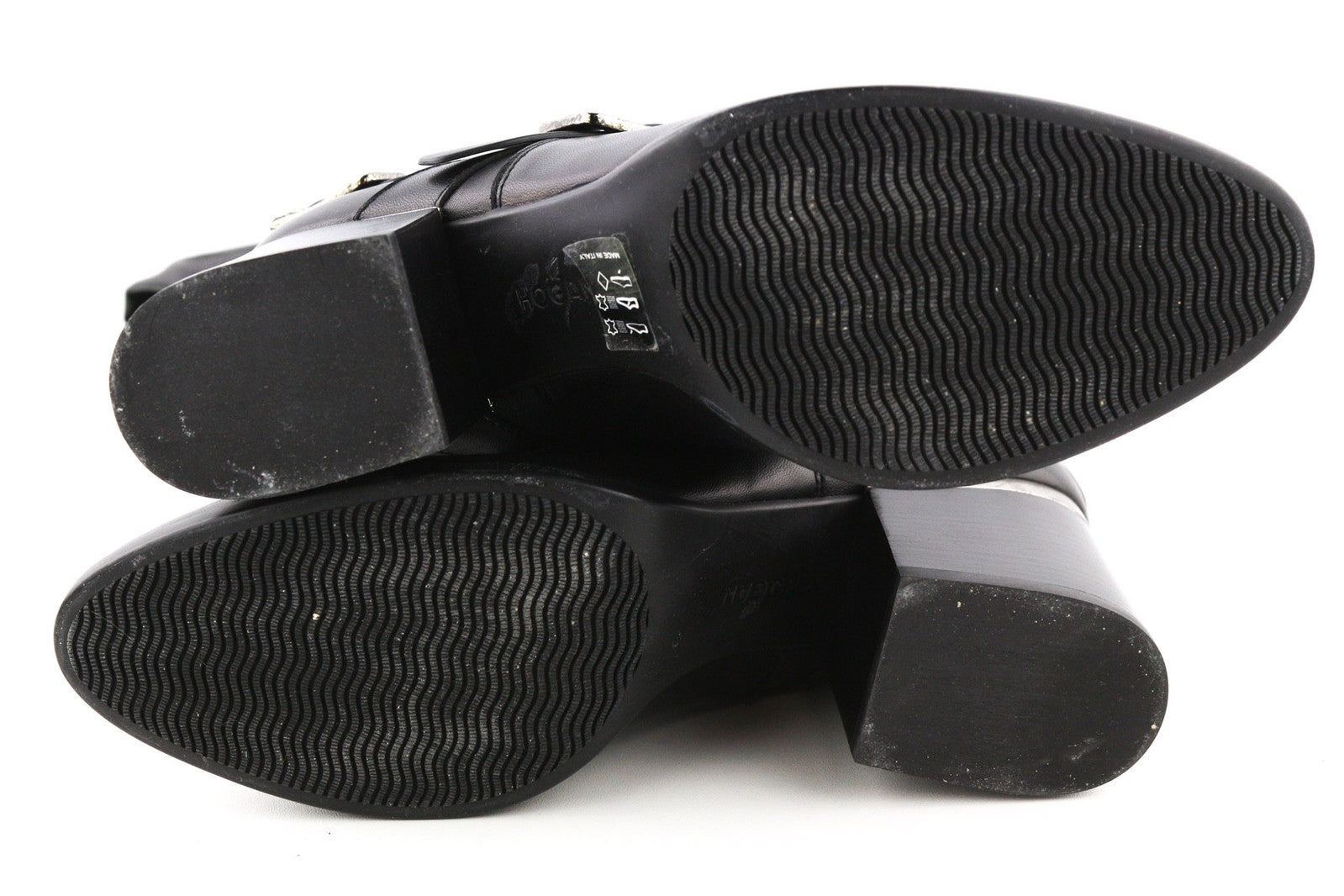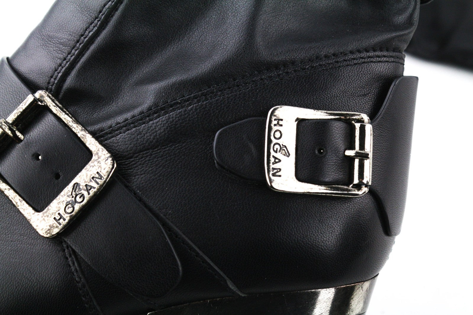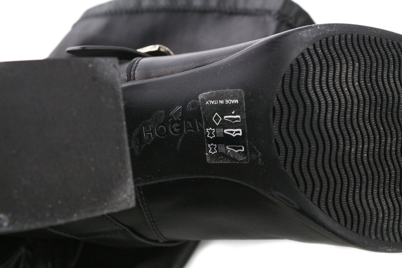 HOGAN Women Shoes EU38.5 Black Genuine Leather Buckled Over-Knee Heel Boots