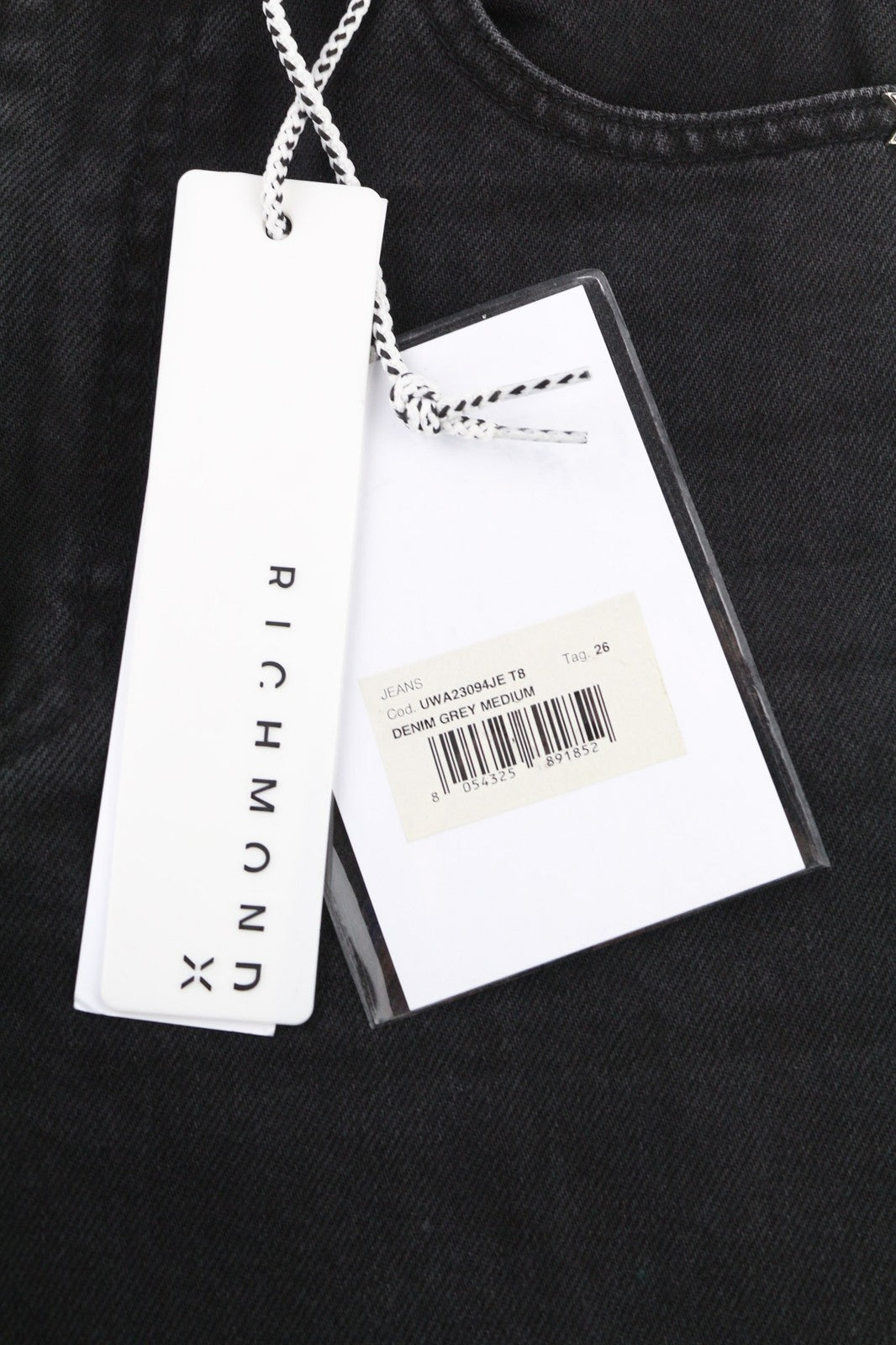 JOHN RICHMOND Icy Women's Jeans W26 High Waist Wide Leg Distressed Black Denim