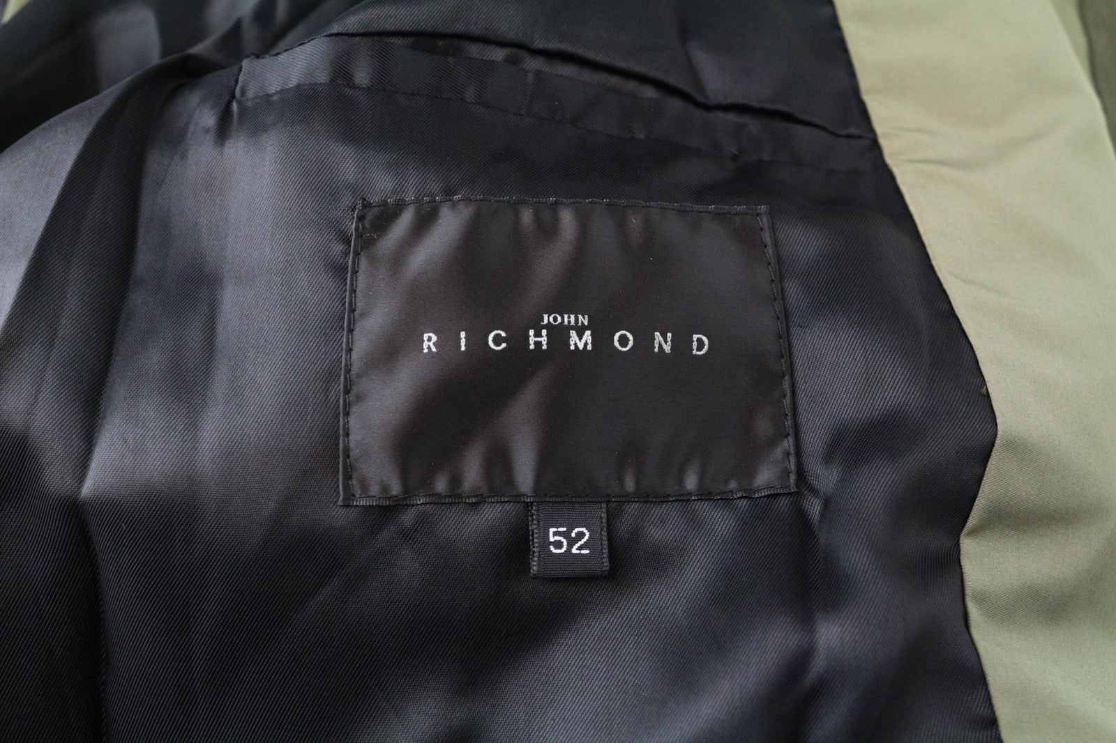 JOHN RICHMOND Men's Jacket 52 Green Cotton Linen Zipped Hooded Lightweight