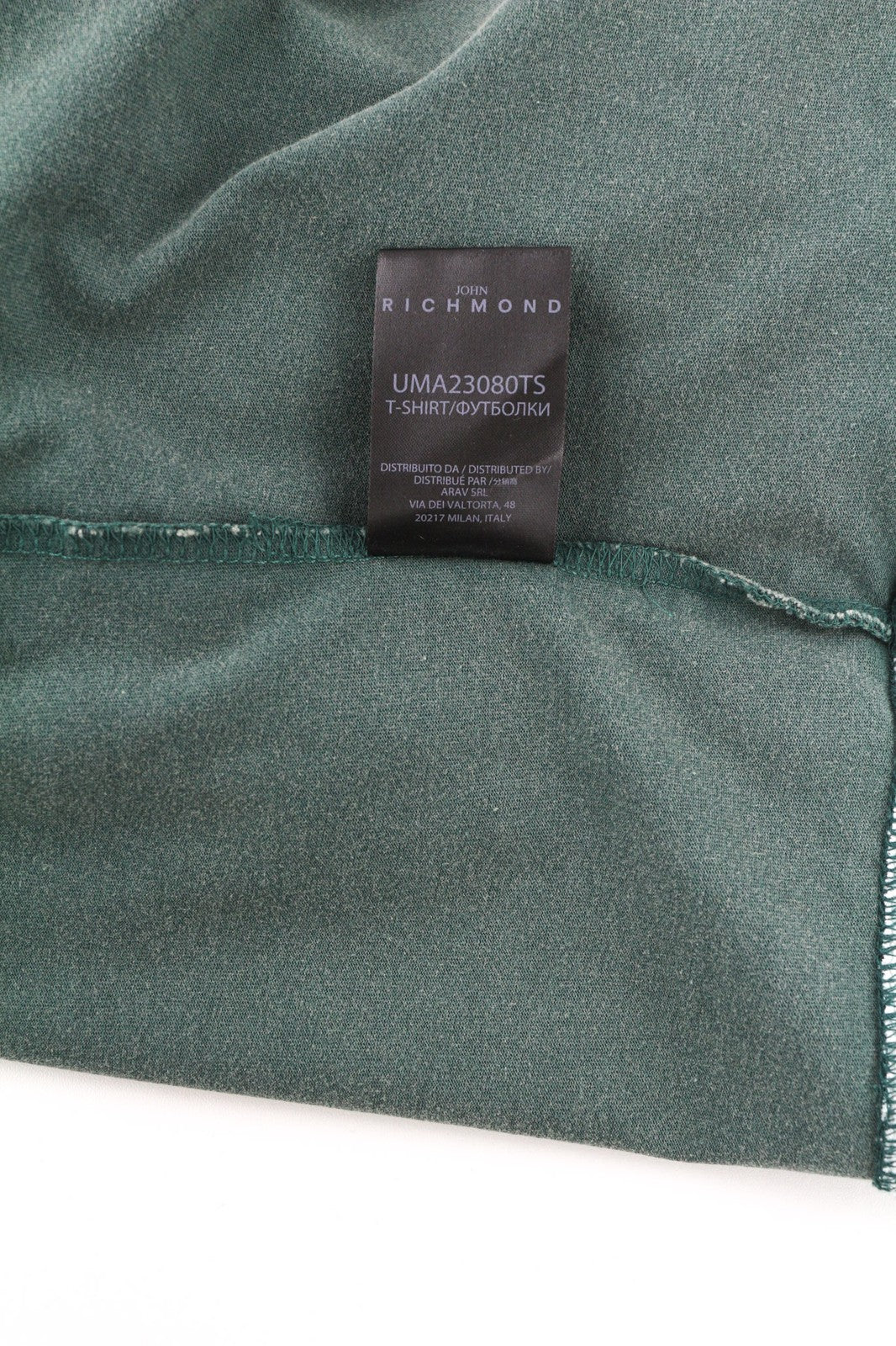 JOHN RICHMOND Mens T-Shirt L Green Crew Neck Short Sleeve Oversized Patch