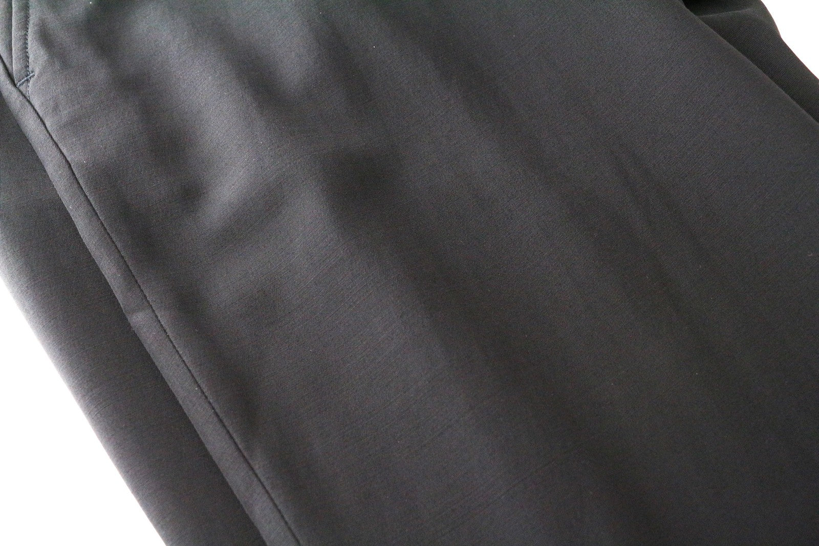 New with defects. Imprints on the front and back, stain inside the left hem. Thinned out fabric on the left leg. Shiny. Please see added photos.