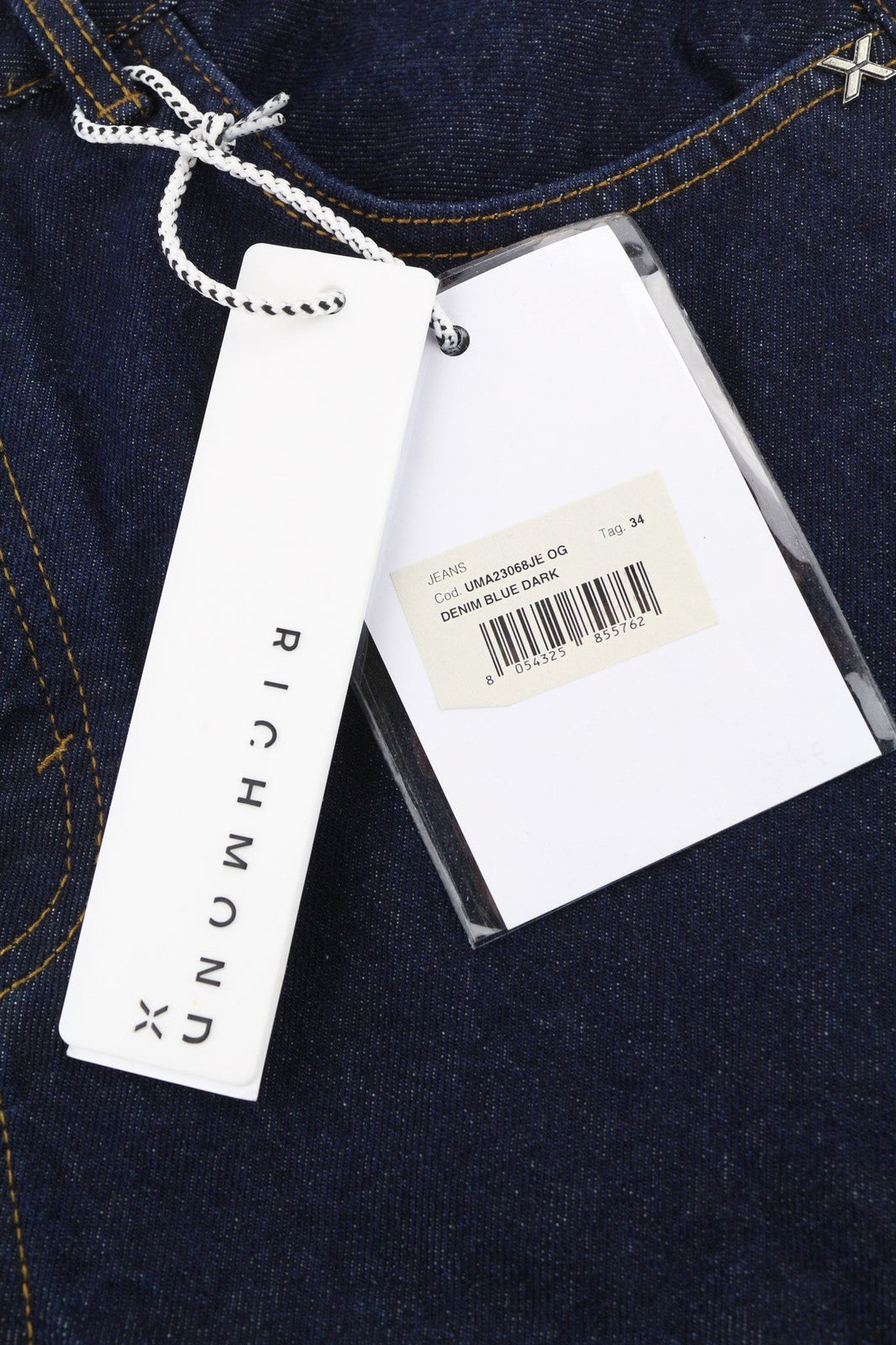 JOHN RICHMOND Nex Men's Jeans W34 Baggy Dark Blue Washed Denim Buttoned Logo