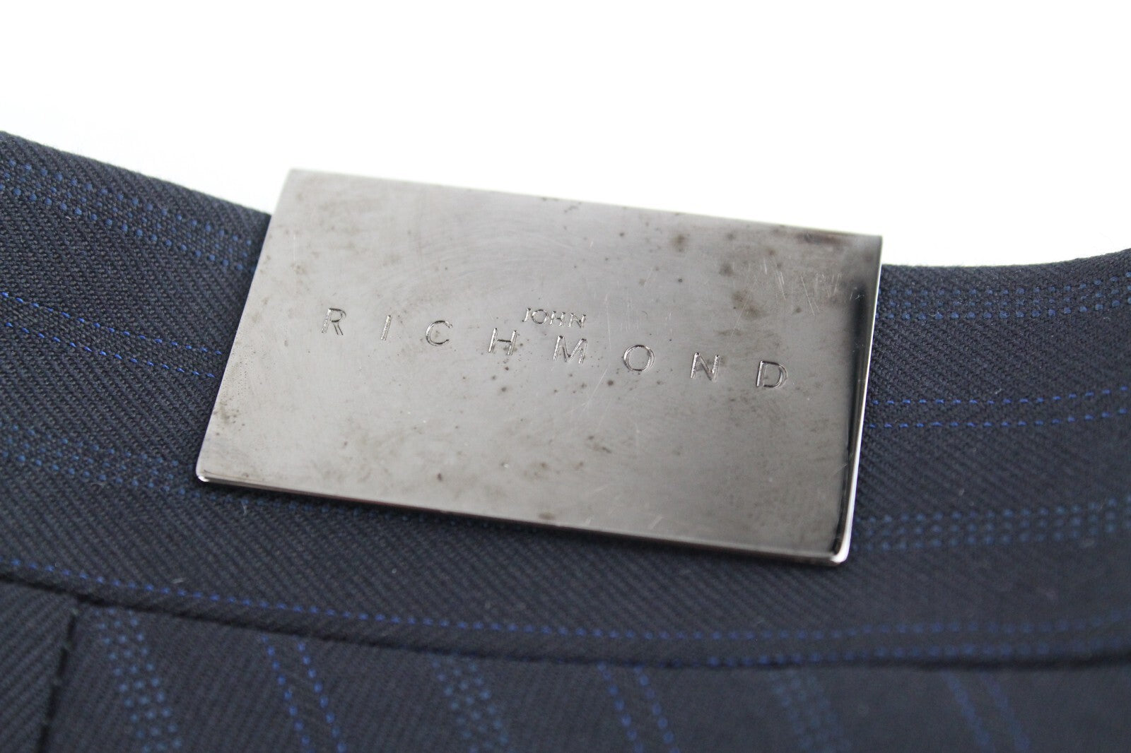 JOHN RICHMOND UK16 Navy Wool Trousers Striped Pleated Classic Fit Men's