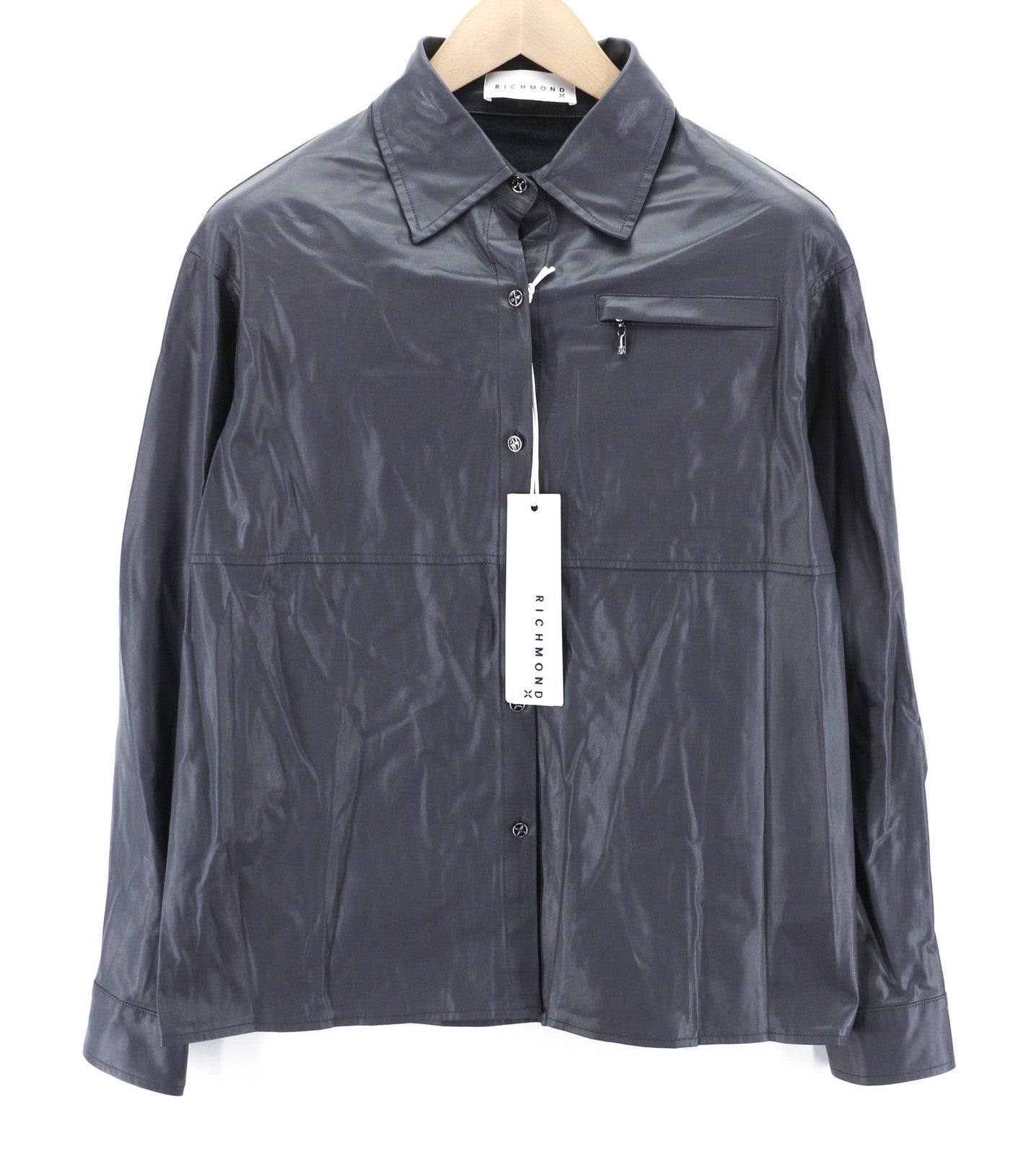 JOHN RICHMOND Womens Set S Grey Fake Leather Buttoned Outfits Regular 2 Pc
