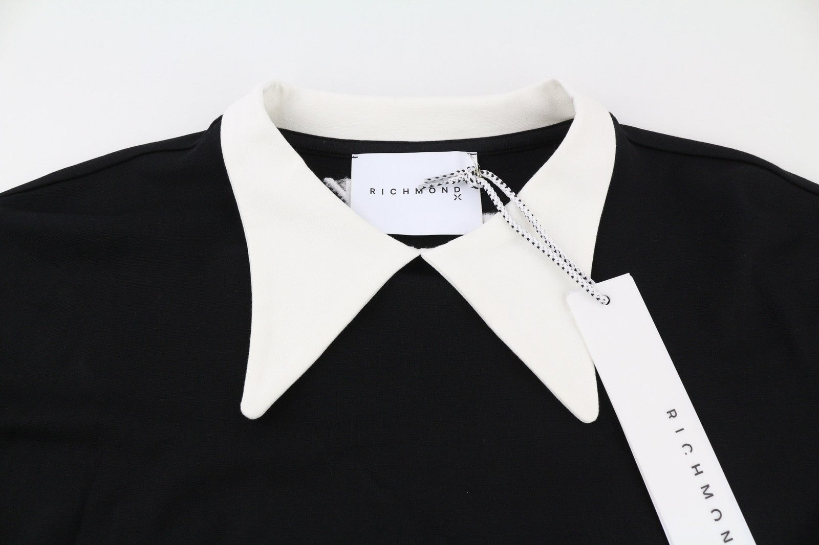 JOHN RICHMOND Women's Sweatshirt S Cropped Stripe Black Logo Drawstring Hem