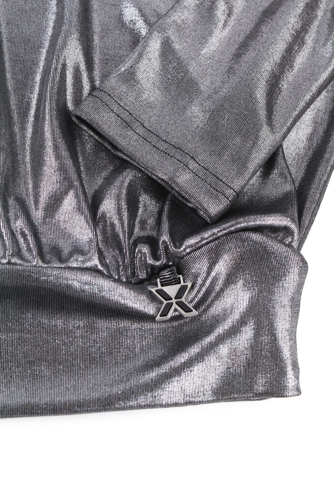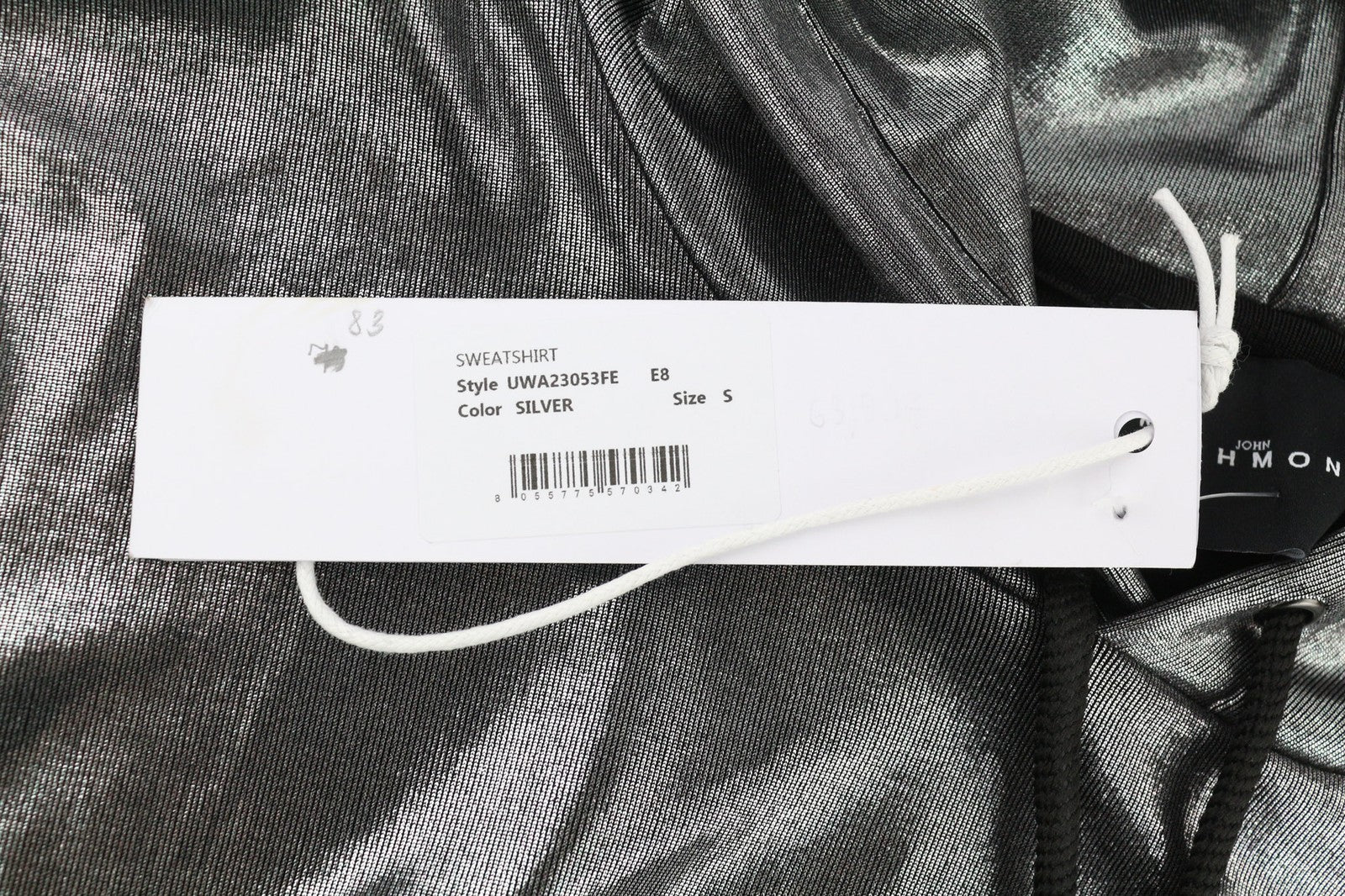 JOHN RICHMOND Women's Sweatshirt S Silver Shiny Round Neck Pullover Hoodie