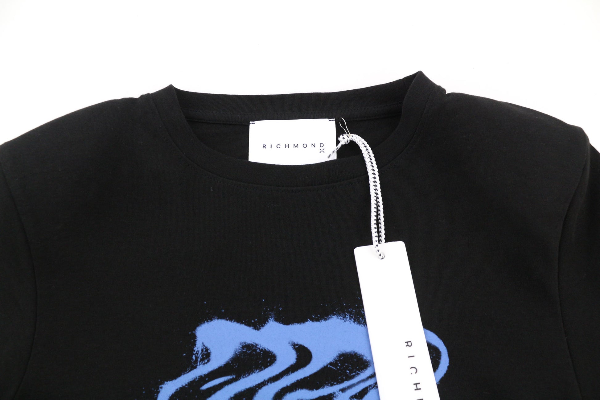 JOHN RICHMOND Women's T-Shirt S Black Shoulder Pads Short Sleeve Logo Print