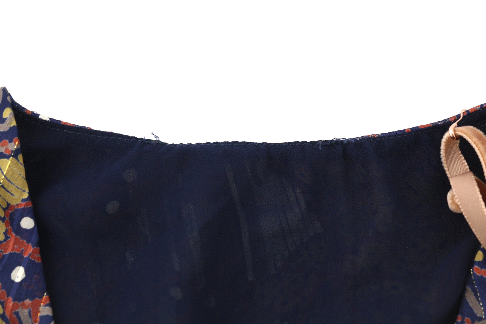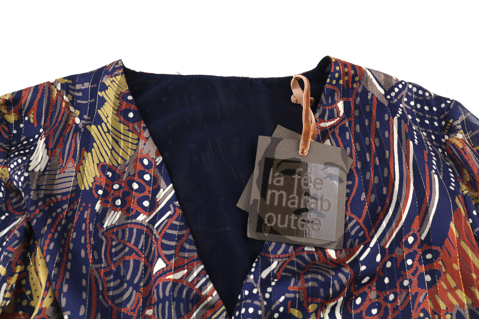 LA FEE MARABOUTEE Women Dress 38 Long Sleeved V-Neck Elastic Waist Printed Short