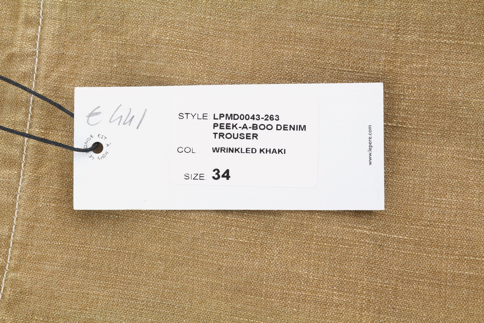 LE PERE Peek-A-Boo Denim Men Trousers W34 Beige Wrinkled Khaki Cargo RRP550