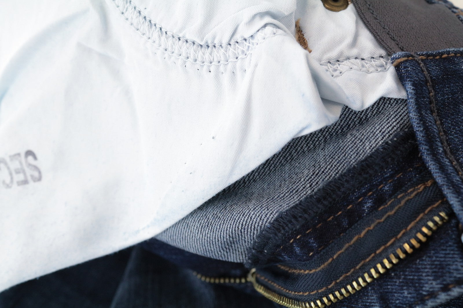 CONDITION: New with defects. Stain on the left leg, tear in the back. Dyed pockets' lining. Please see added photos.