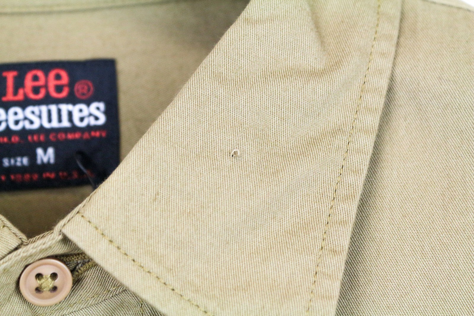 LEE Men's Shirt M Khaki Green Cotton LS Buttoned Pocketed Shirt