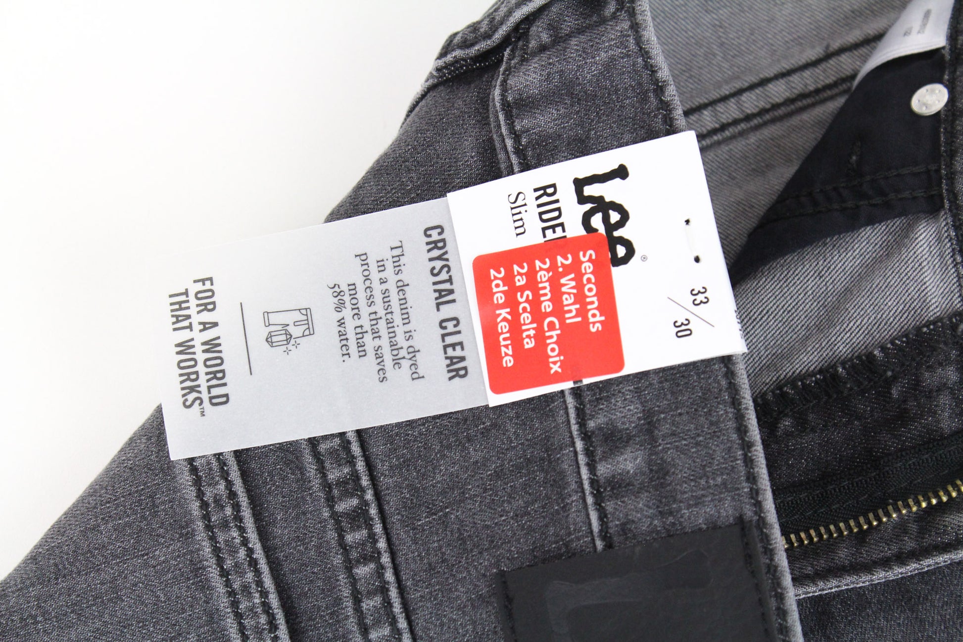 LEE Rider Men's W33/L30 Grey Washed Denim Stretch Jeans Slim Casual