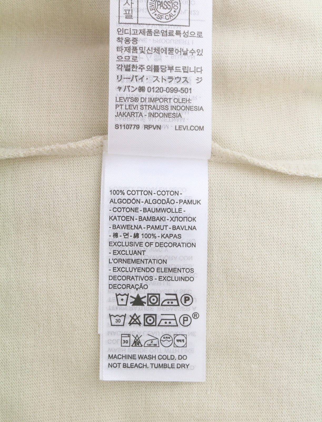 LEVI'S Standard Men T-Shirt XL Light Beige Tricot Cotton Crew Neck Short Sleeve
