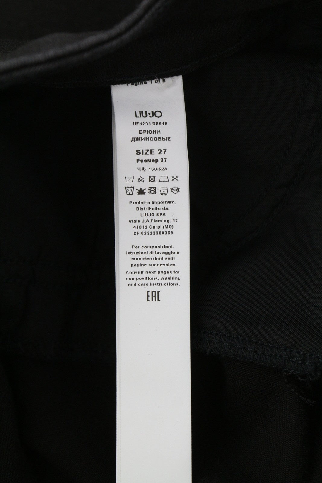 LIU JO Women's Jeans W27 Black Straight Leg High Waist Zip Fly Logo