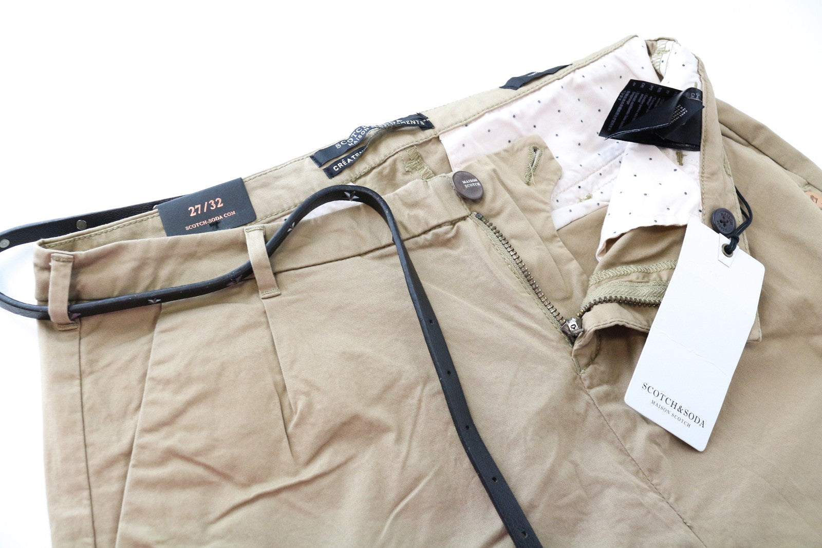 MAISON SCOTCH Belted Pants W27/L32 Slim Stretch Sand Brown Womens