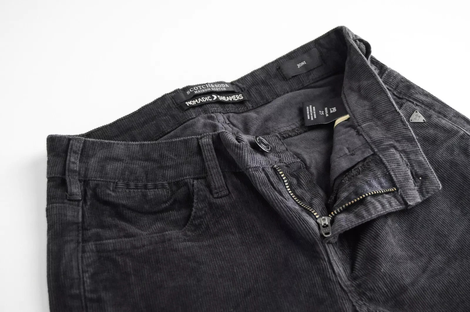 MAISON SCOTCH Joni Women's Trousers W25 Dark Grey Stretch Corduroy Flared