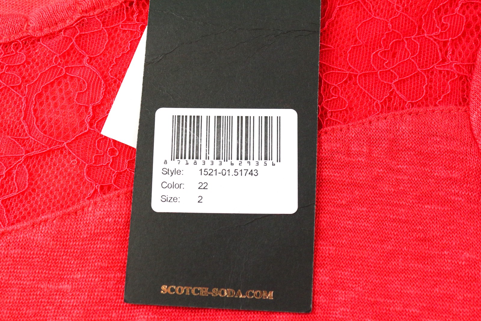 MAISON SCOTCH Lace Pullover Tee M Bright Red Linen Short Sleeve