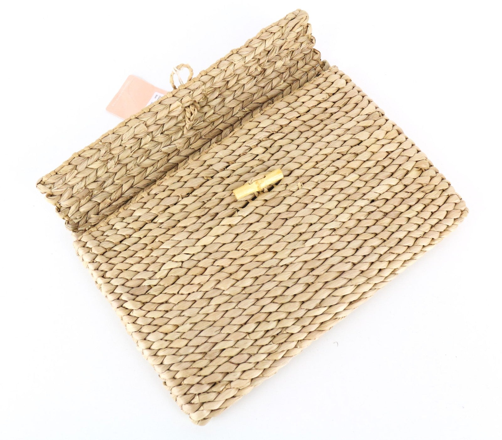 MAISON SCOTCH Women Bag OS Light Brown Straw Braided Summer Button Clutch