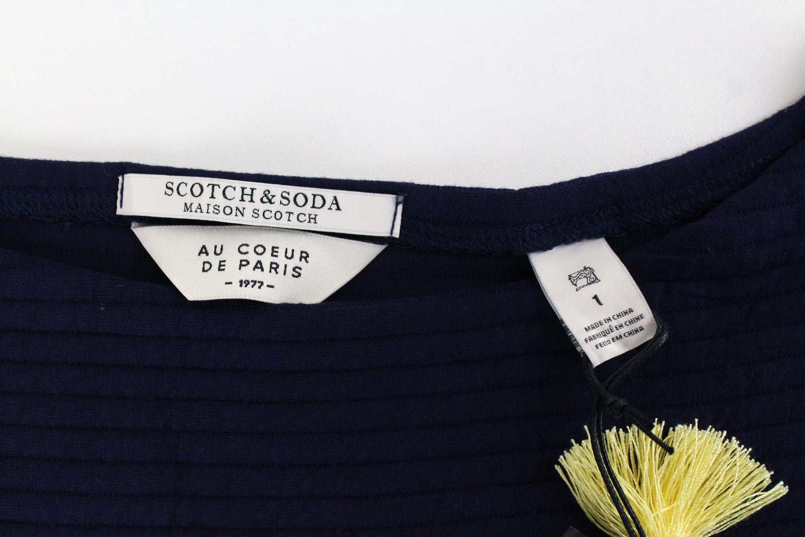MAISON SCOTCH Women Dress S Blue Long Sleeved Round Neck Ribbed Stretch