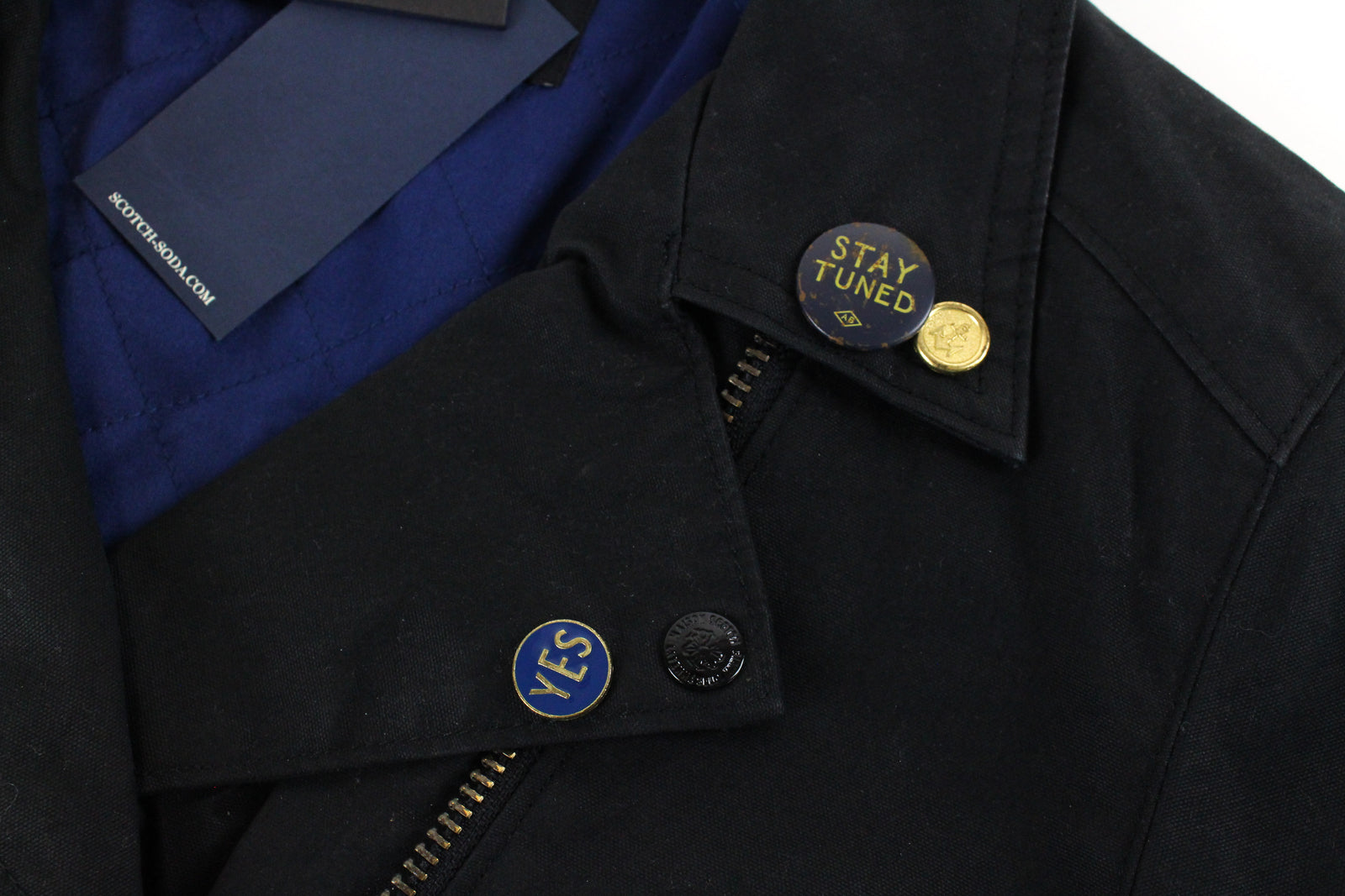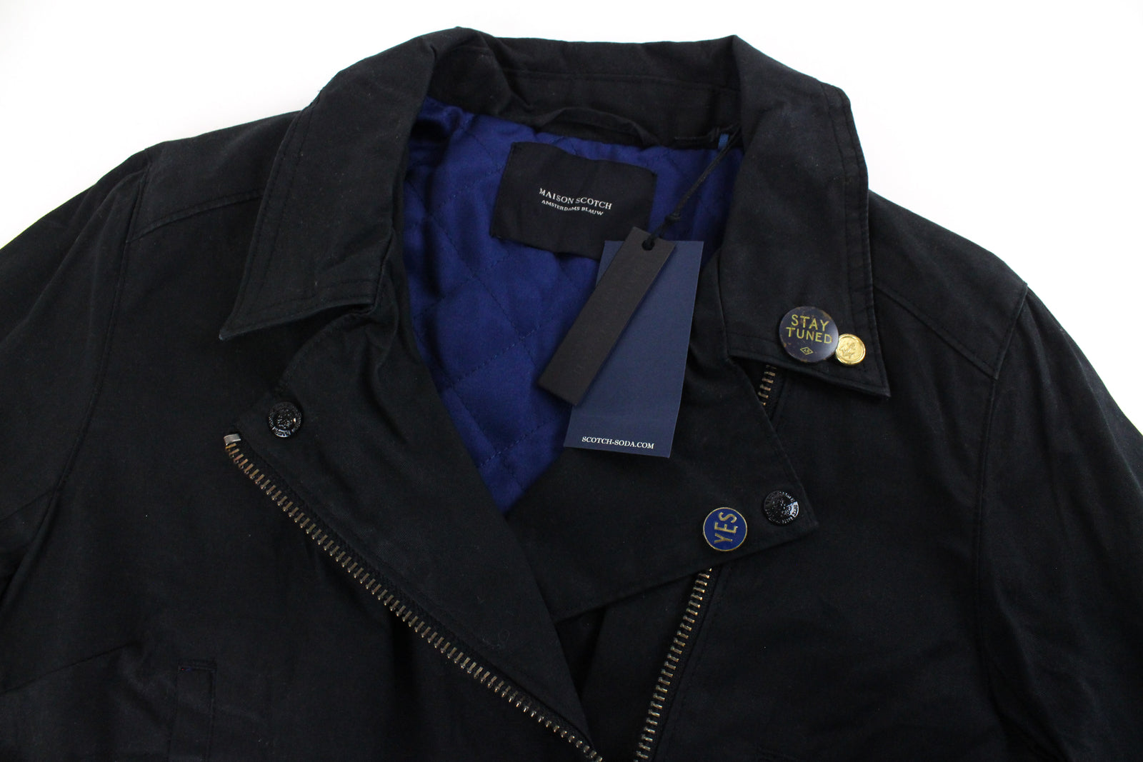 MAISON SCOTCH Women Jacket L Cropped Black Plain Logo Pin Biker Style